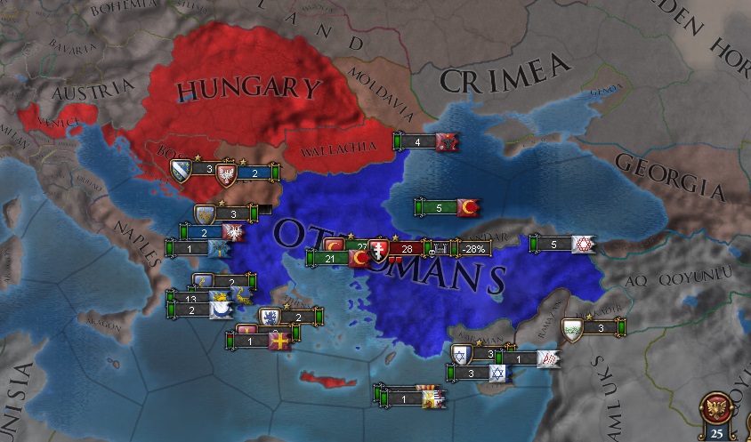 神)言いたいことはよくわかる。セルビアとコンスタンチノープル併合のAE上昇でヴァルナ十字軍に続く十字軍の呼びかけがなされたようだな。