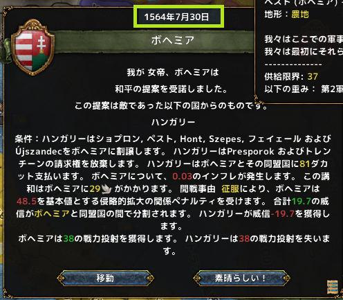 7月 ボヘミアがハンガリーから6州を獲得。ボヘミアの拡大に勢いがついてきた。強力なライバルになりそう