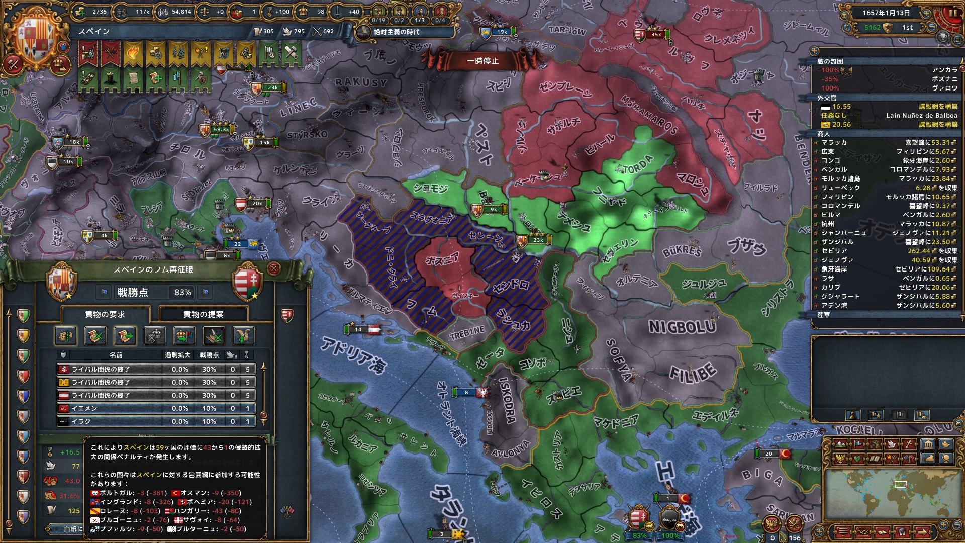 同時期に、セルビアを外交属国化する。オスマンからのコア返還が有効にはたらいた。さらに周辺国への再征服CBも手に入る。