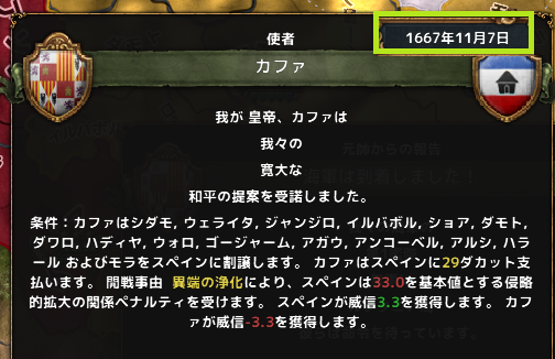 11月 イエメンと停戦。ミドゥリ・バリに4州を返還させる。イエメンや同盟参戦諸国からスペイン本国も3州を獲得。