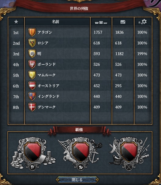 特に統治効率についてはフランス・プロイセン・オーストリア・ロシアなどの有名どころのミッションと比べると早い時期に達成できるのがとりわけ優れていると思います。