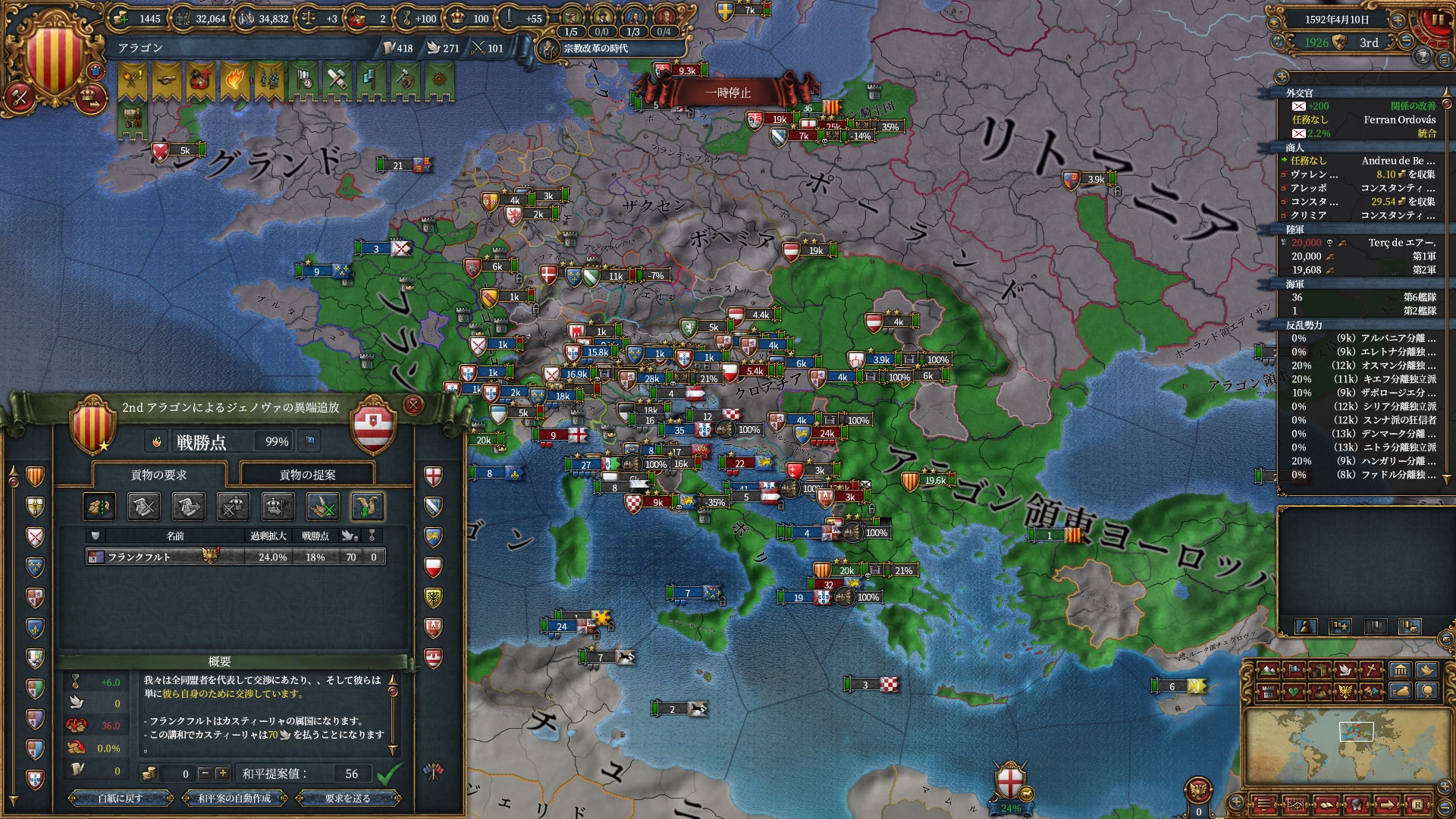 なおNIはすこぶる強力でAE-10%と関係の改善+25%は正教会の聖ニコラオスのイコンと併せてかなりの州を奪え、