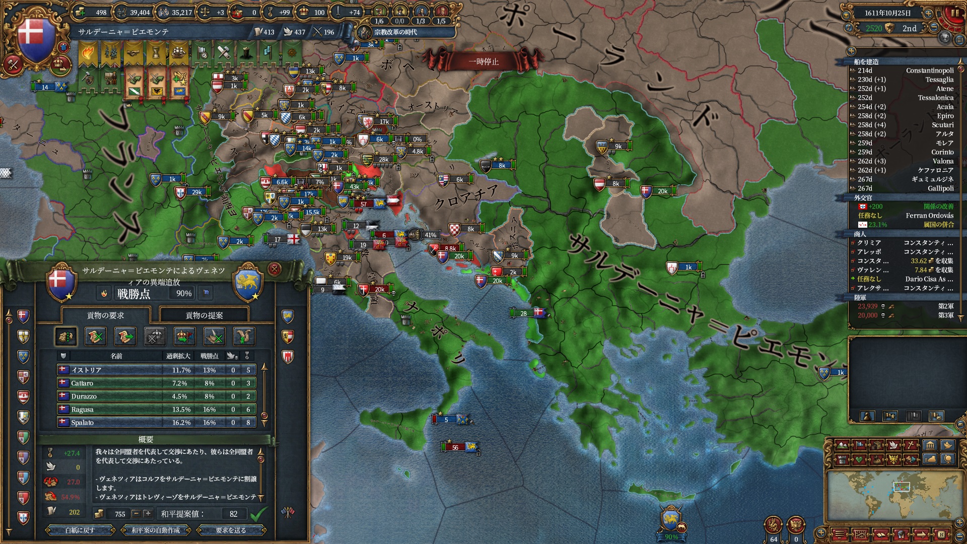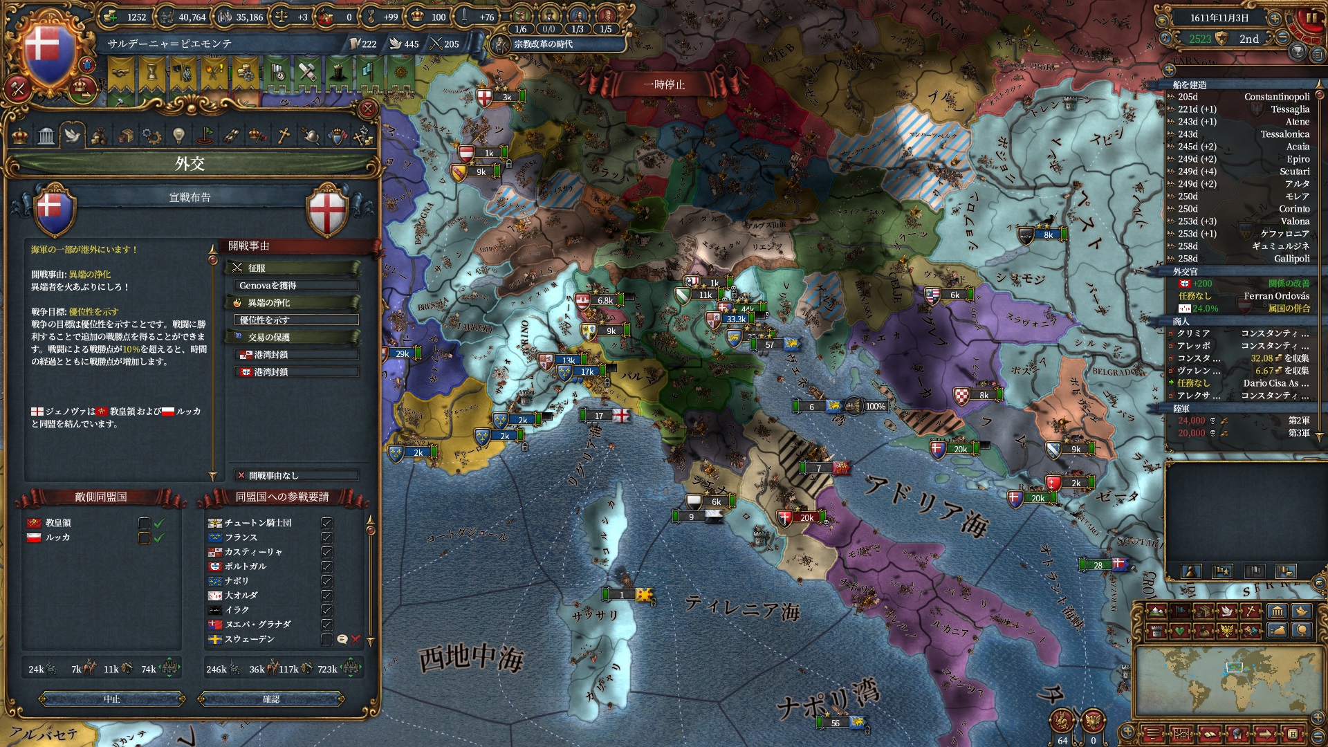 ジェノヴァやヴェネツィアたちょいちょい包囲網に入ろうとしてくるため、スウェーデンと同盟してなんとかしようとしています。