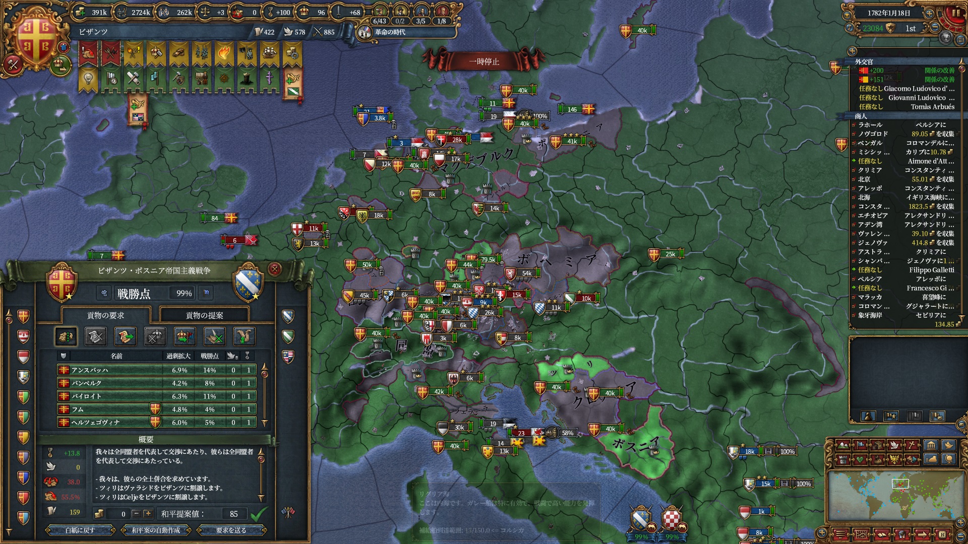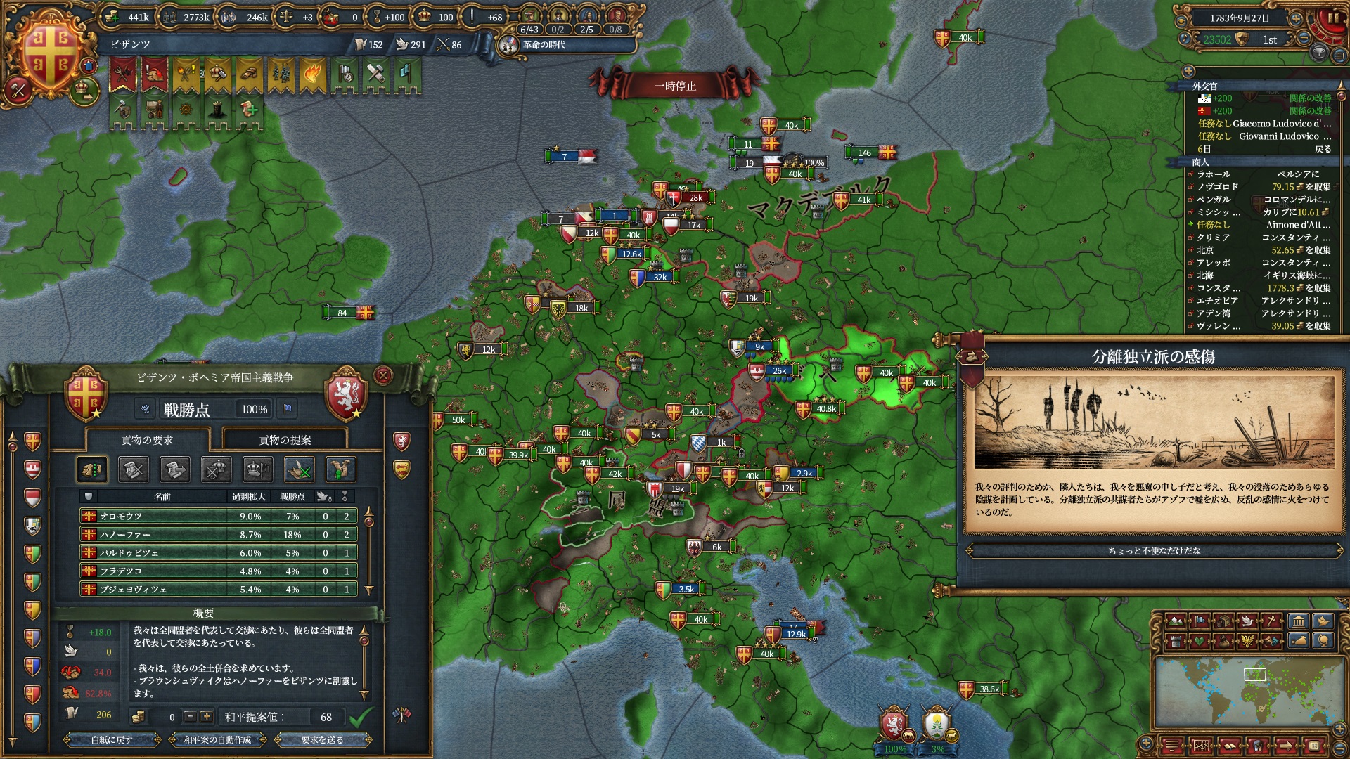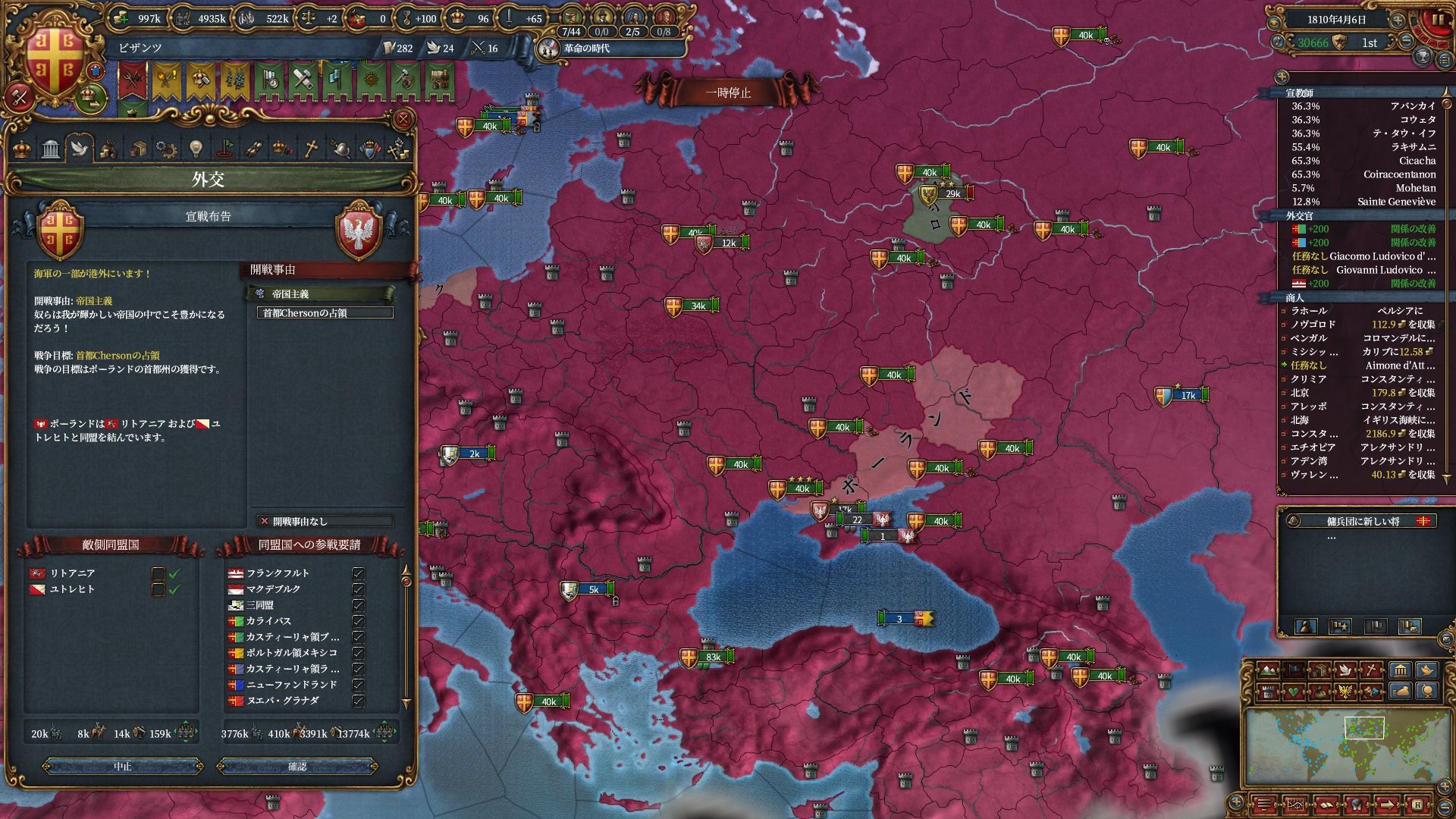 属国:フランクフルト・マクデブルク・三同盟・クラクフ衛星国(併合中)・アユタヤ衛星国(併合中)