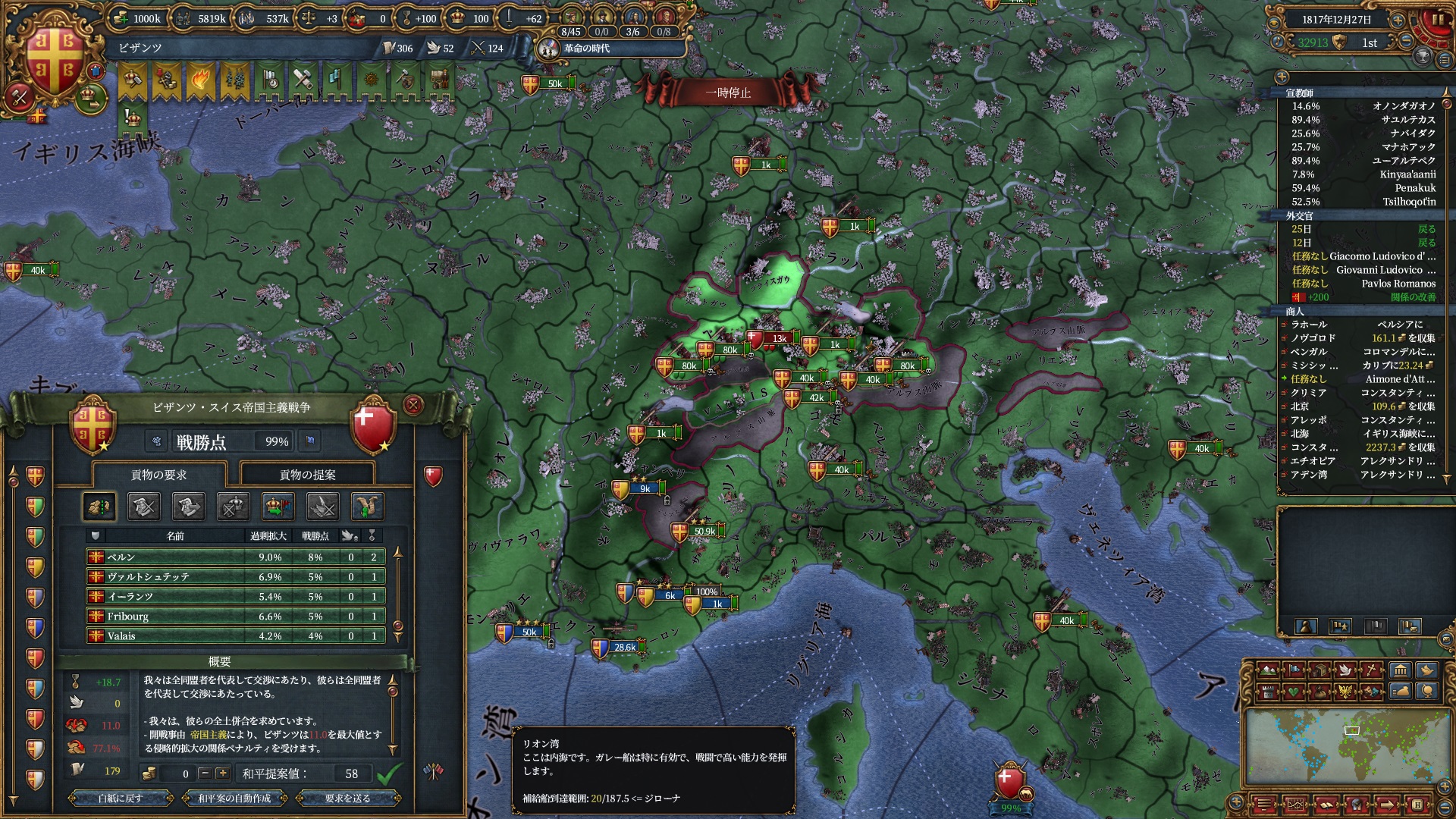 後半は暇なので停戦破りでも良かったのですがどうせ改宗が終わるまで待つだけだったのでゆっくりやっています。