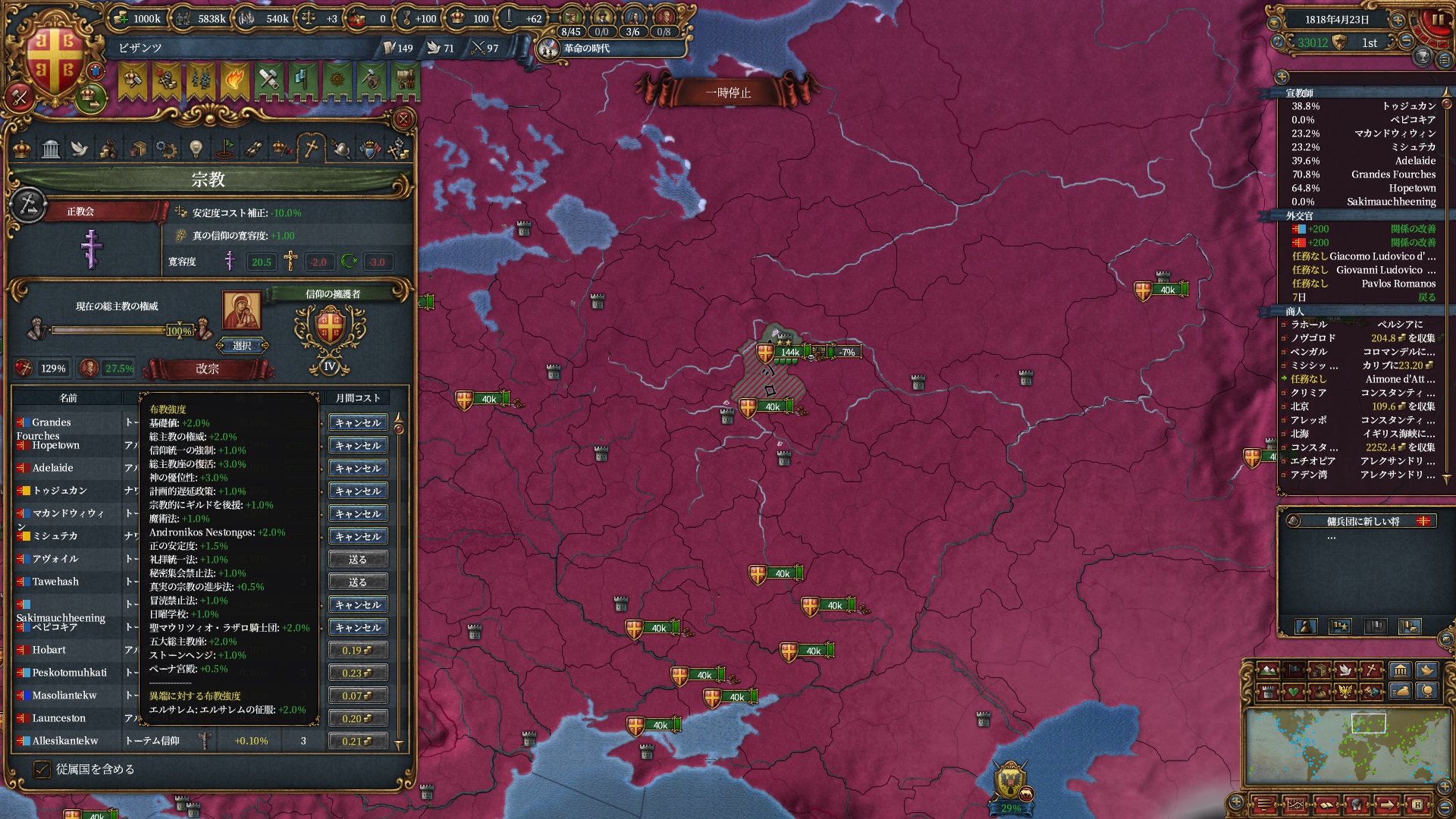 今回作った属国達はなかなか改宗を頑張ってくれていたのもあり本来はこれがスタンダードなんだと思う次第。。。