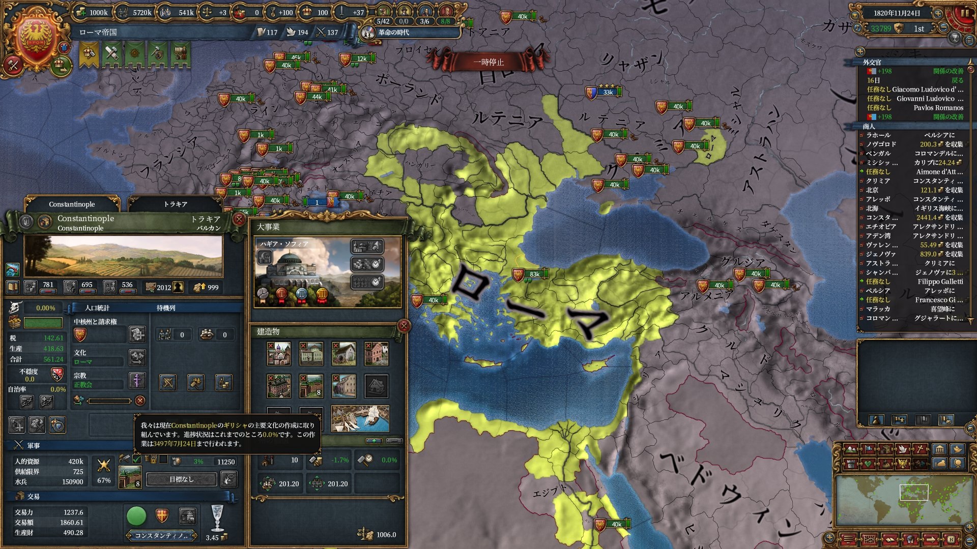 また現時点で余裕がある交易アイデアを取得し宗教+交易ポリシーの布教強度+1%を狙いにいきます。