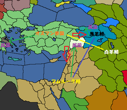 オスマン・白羊朝 vs マムルーク・黒羊朝・その属国たち の戦いです