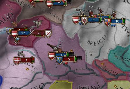 戦争に不慣れなHRE軍は歩調が揃わず、AIの救援に向かうも各個撃破されて壊滅状態に陥ります