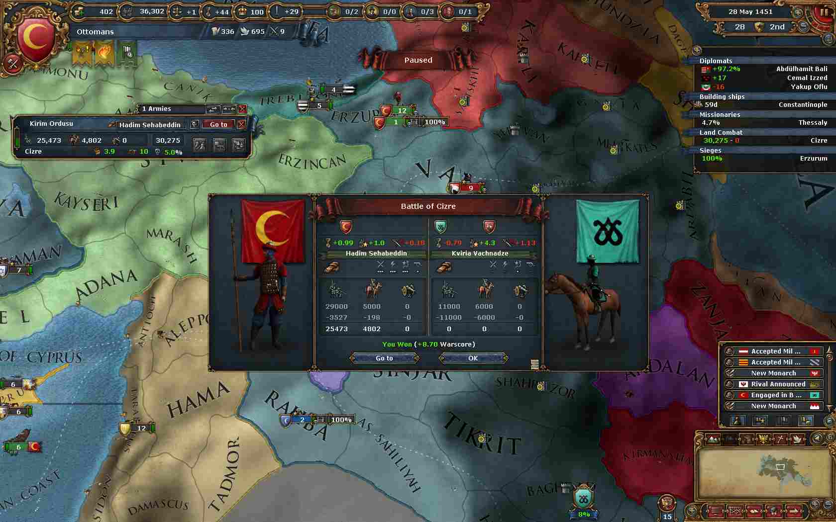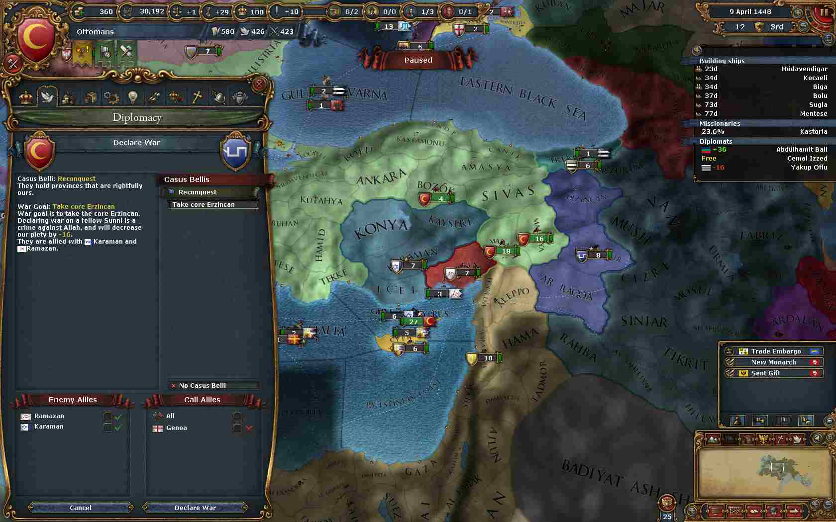 そして今度は属国Syria作成の為、Aq QoyunluにオスマンコアのCBで宣戦布告