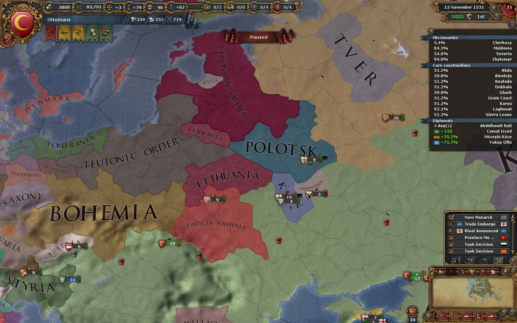 ということで、まずはPolandのコア州を多く抱えるBohemiaを攻めることにしました。