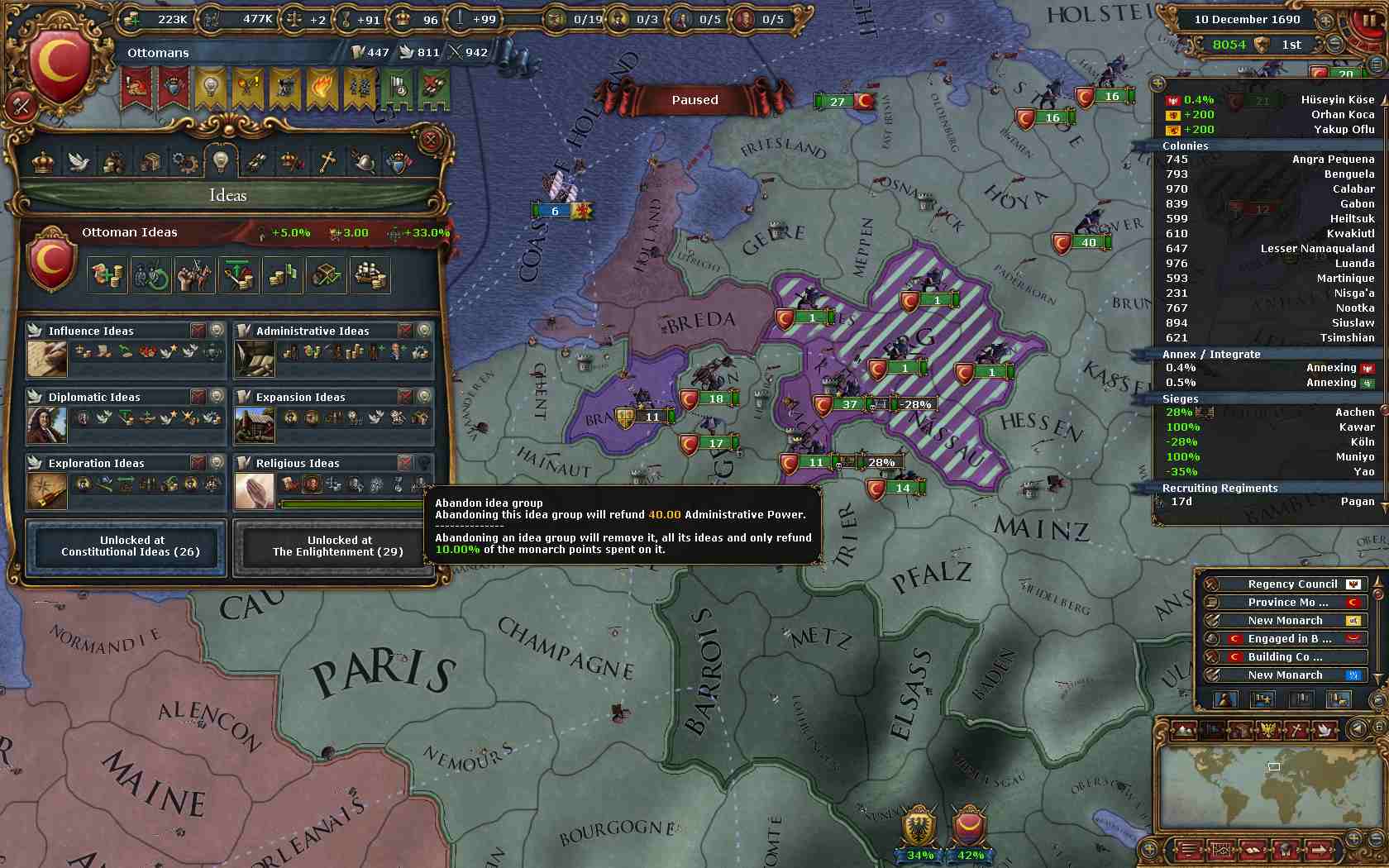 ここで宗教アイデアを放棄し、軍量アイデアを選択