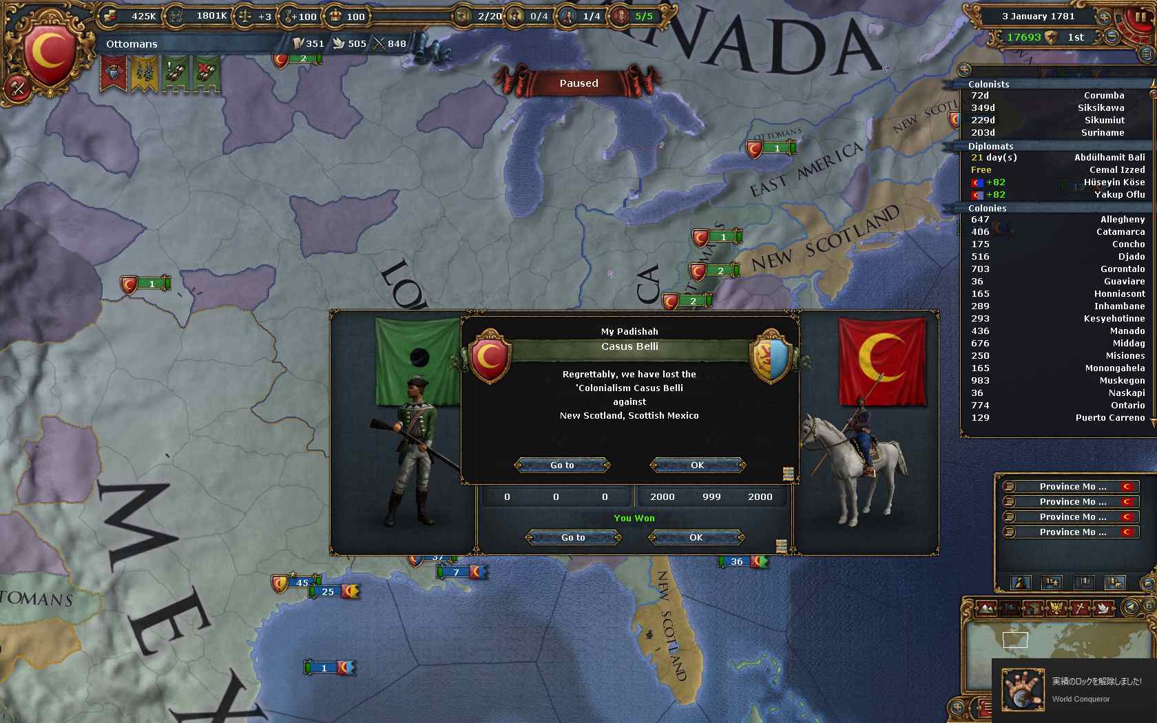属国2国の外交併合が完了したので世界征服の実績が解除されました。