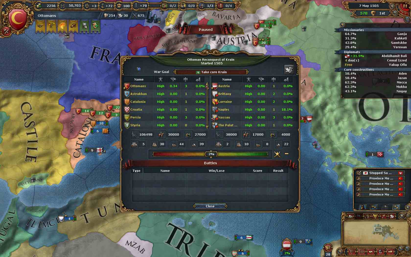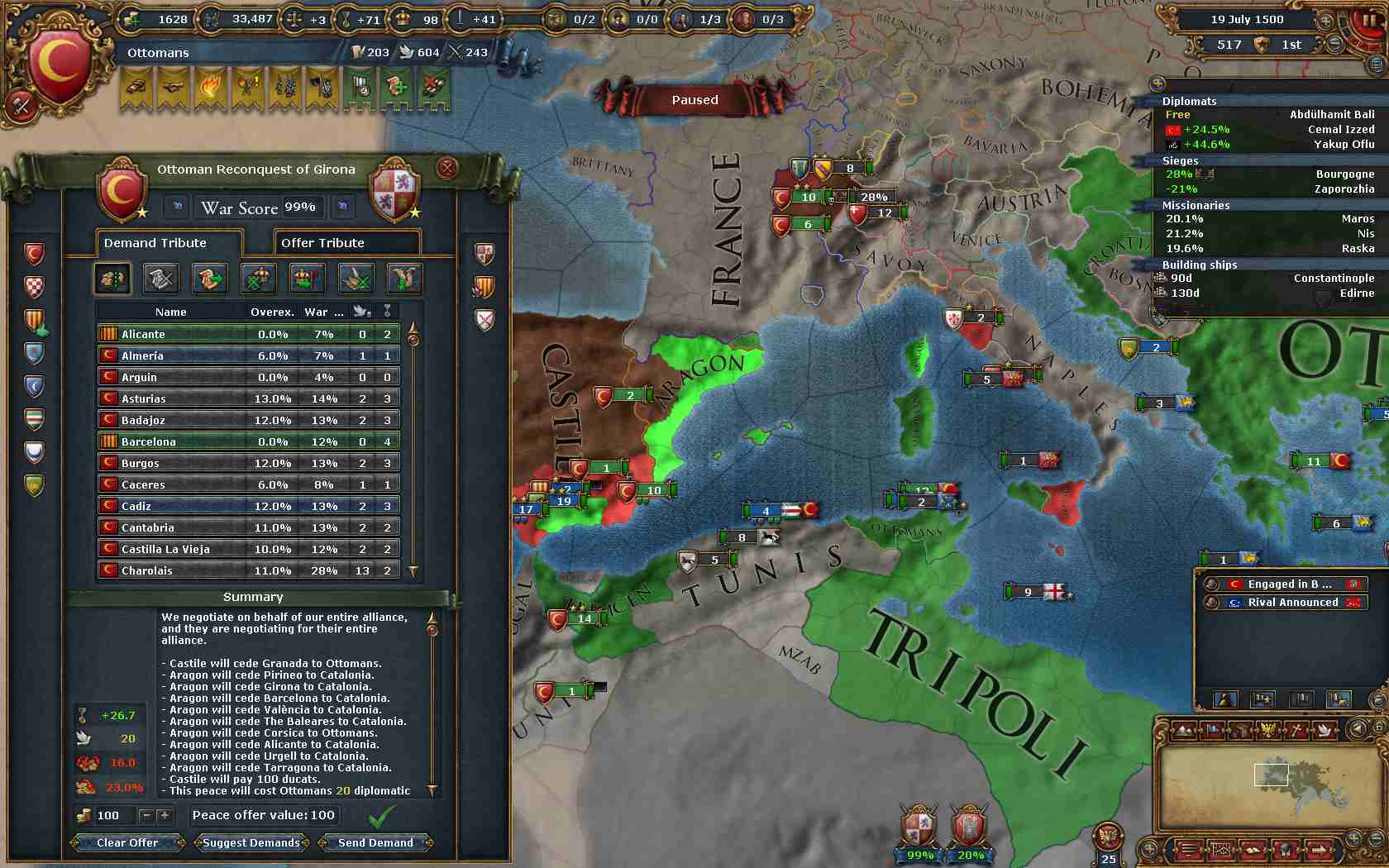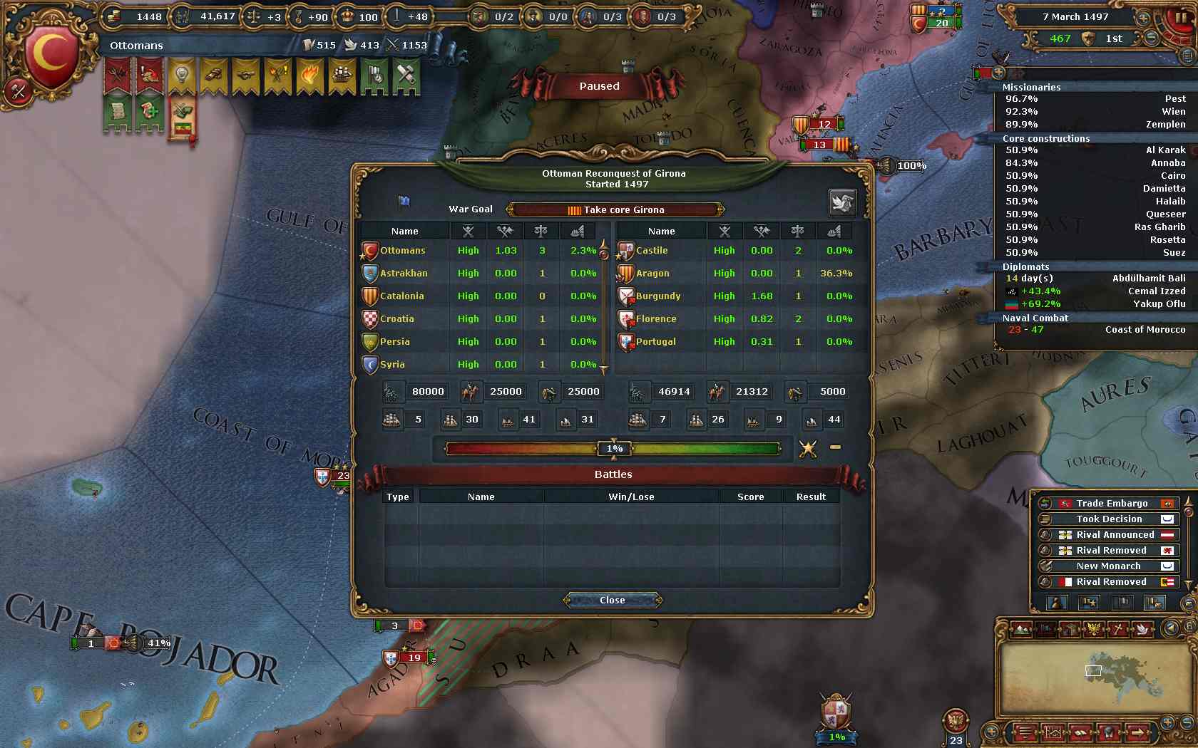 先にPortugalと個別和平。Tlemcenのコア州を回収。