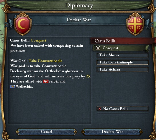 ビザンチン帝国は滅ぼした。次はその周辺領域を征服し、帝国の後継者であるオスマンの正当な土地を回収するべきであろう。