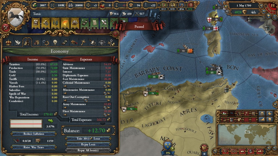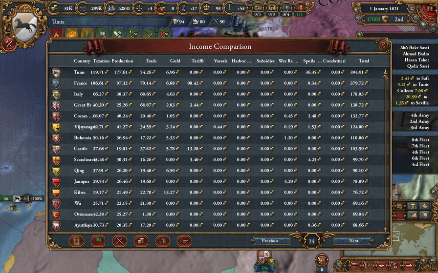 土地数に比べてこれだけ収支があれば、Tunisは名実共に【カルタゴの後継者】を名乗れるのではないでしょうか。