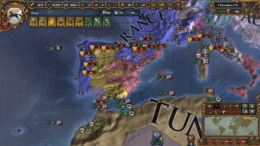 最後に、あらゆる緩衝を失ったAragonを蹂躙。必要なものだけ……ついでにイタリアのとき回収し忘れたマルタ島も得る。