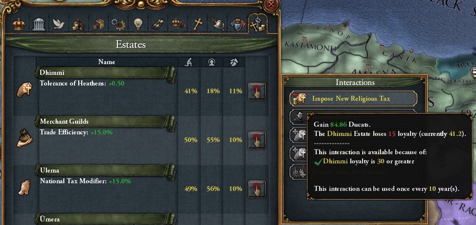 ・Estate interactions などで忠誠 (loyalty) を下げる