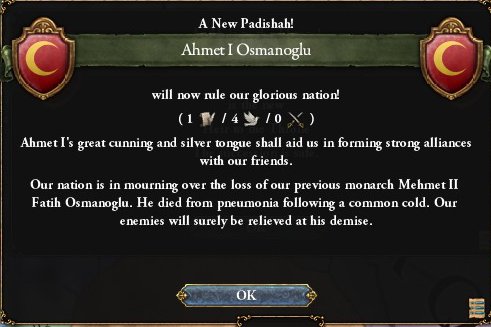オスマンプレイにあたっては5/5/6の超名君メフメトⅡ世がいつまで治めてくれるかというのは関心事ですが、本プレイでは史実より短いとのことでちょっとだけ不満です。
