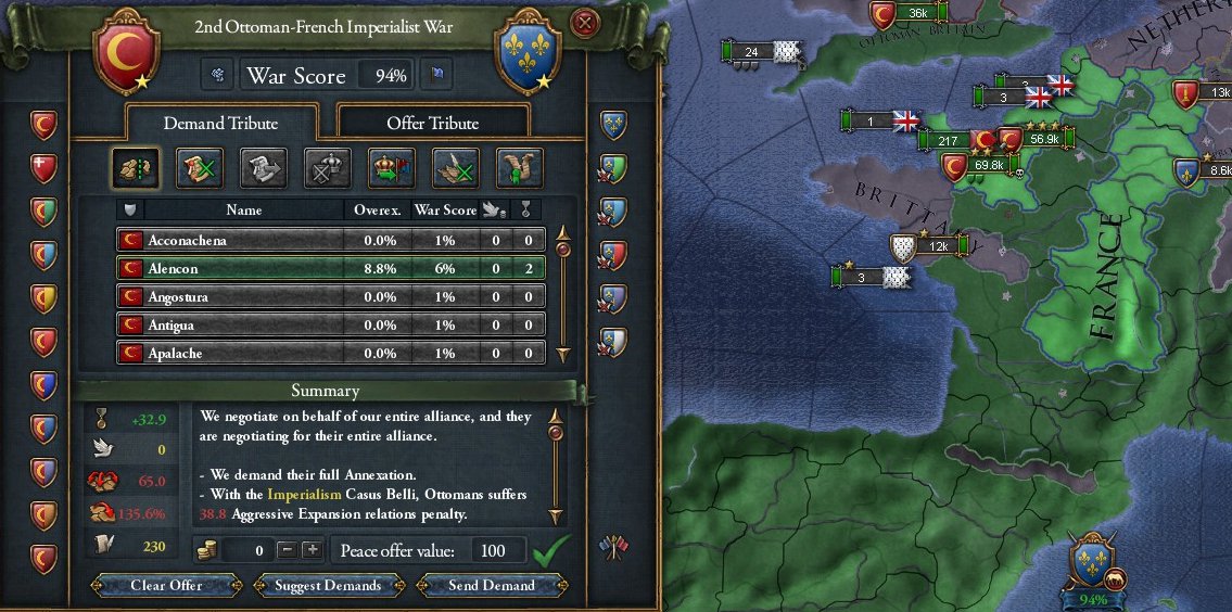 フランス併合時にOEが一時的に100%を超えてしまいましたが、超えた分は直後に衛星国を設立することで逃しました。