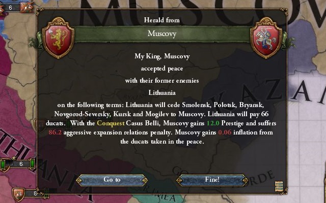 リトアニアはノヴゴロド経由でかなりの大軍を送って来たのだが、フィンランドでもたもたしてるうちに大勢が決してしまった。デスムーミンにでもエンカウントしたのか。