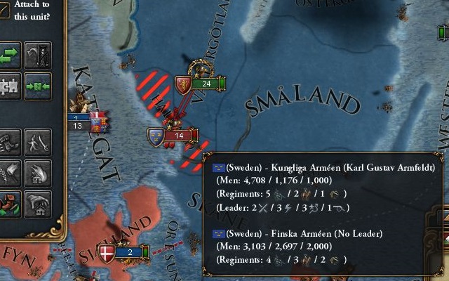 戦力の上では互角に近い両国だが、NIとラッキー国家修正によりデンマークが独力でスウェーデンを撃破する可能性は高くない。