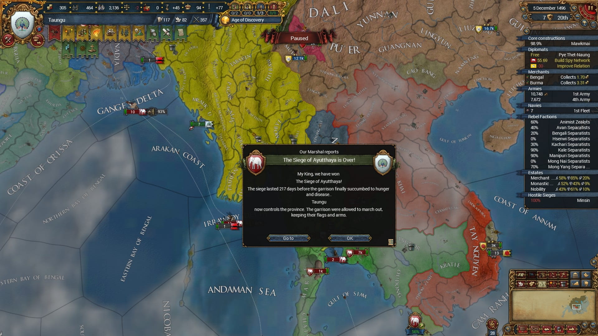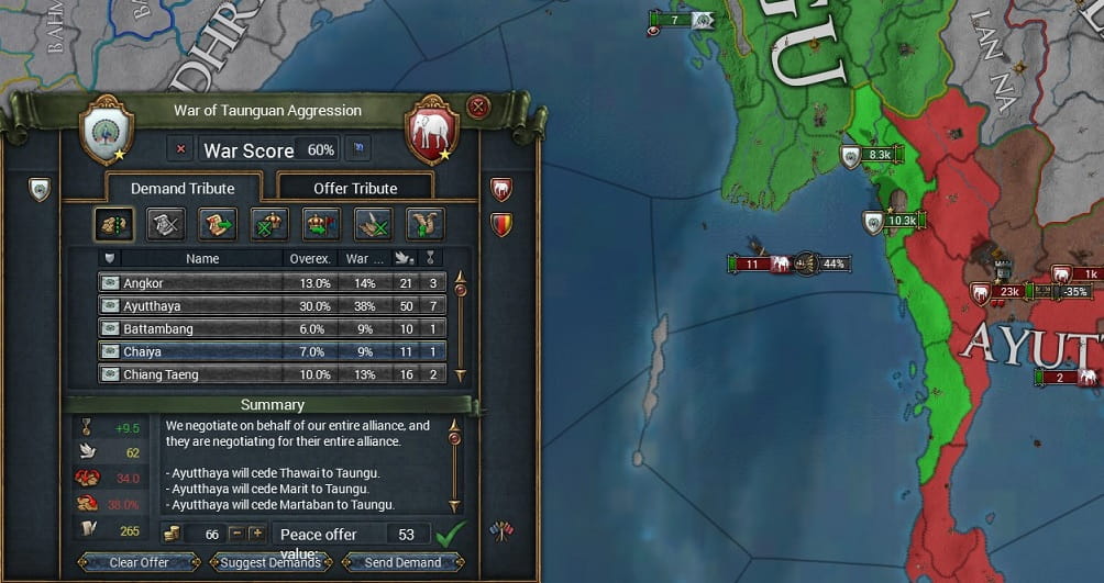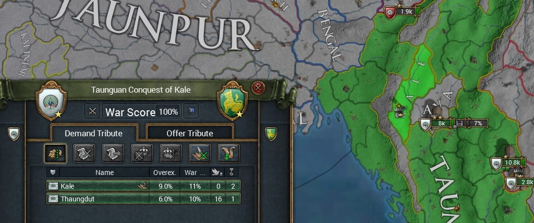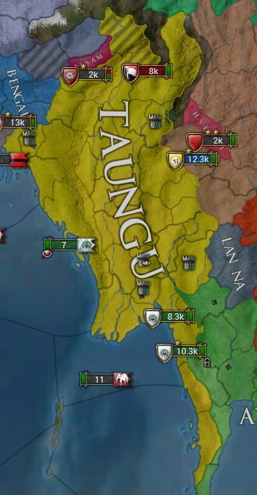 ビルマの征服によりいくつかのミッションを達成したことで、多くの請求権を得るTaunguですが、