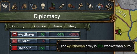画像は決断前。友好国の隣ということもあって戦争していないときは常に兵が0だった。