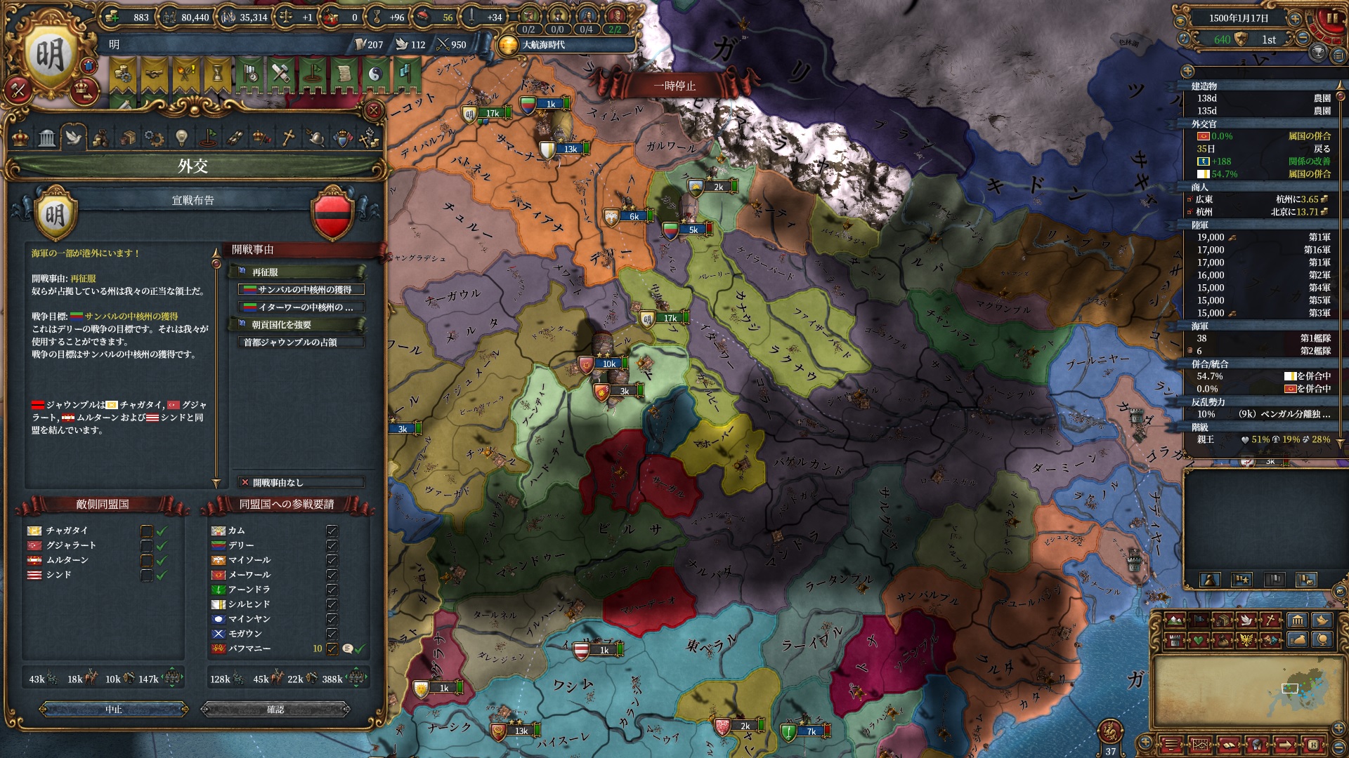 これでジャウンプルに対し広大な属国再征服CBが使えるようになりました。