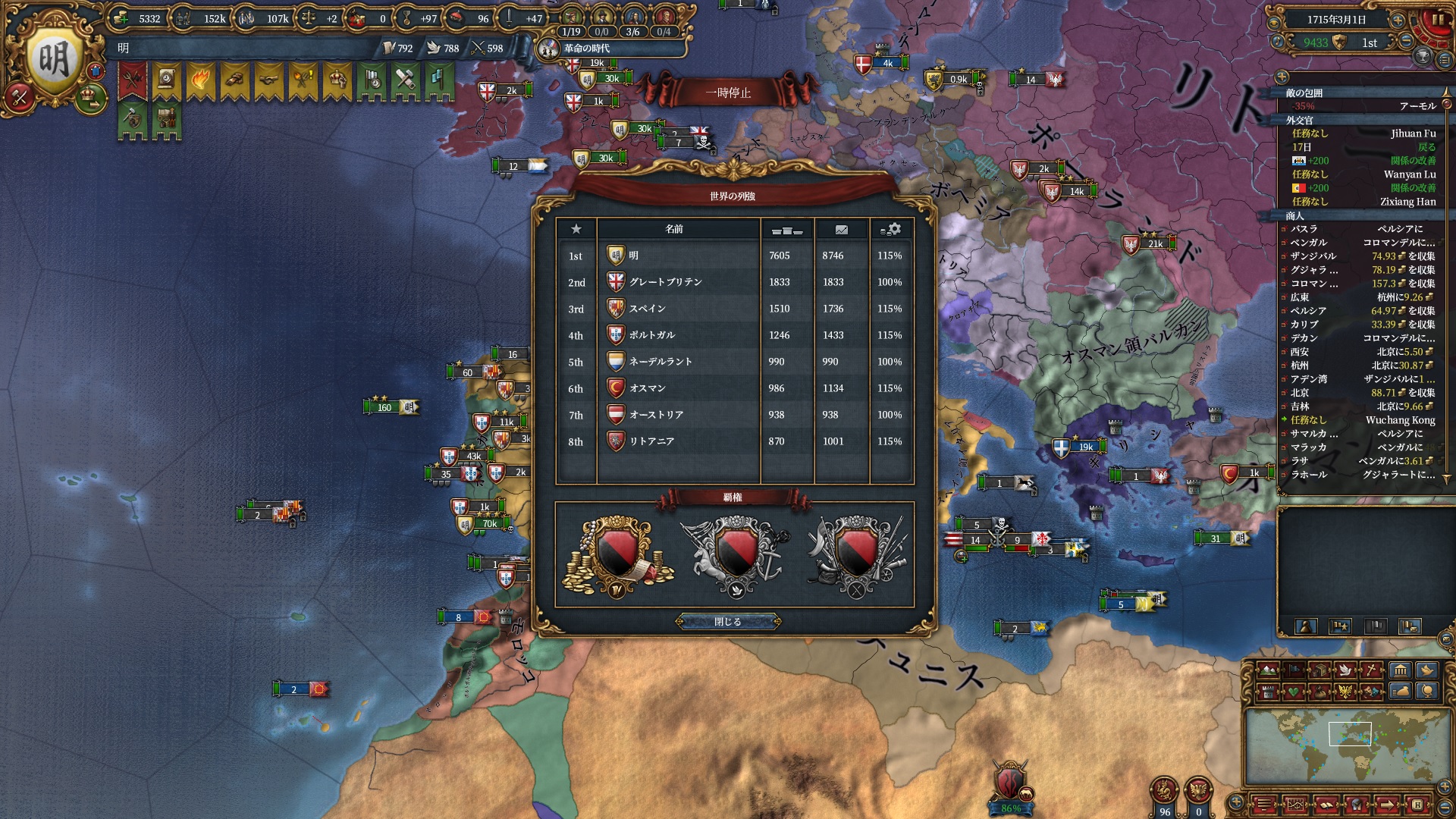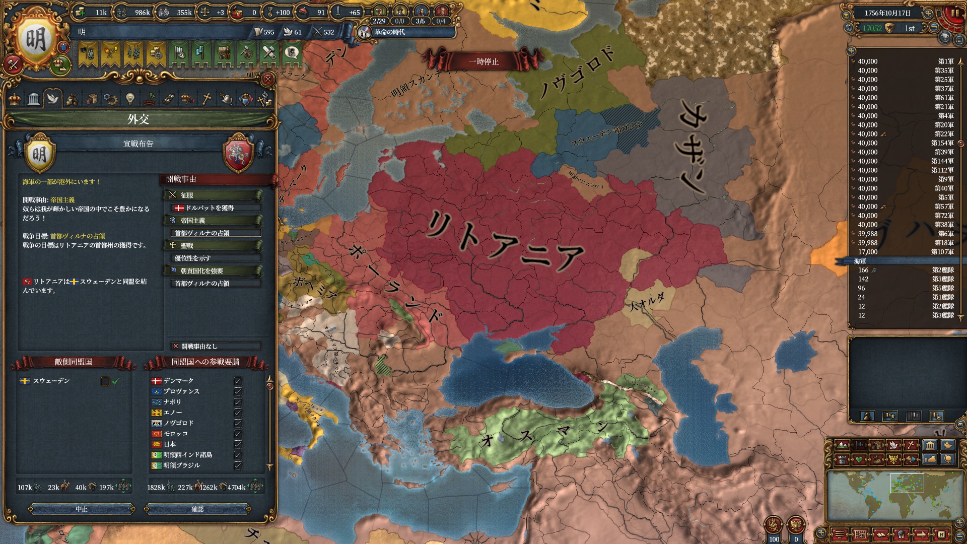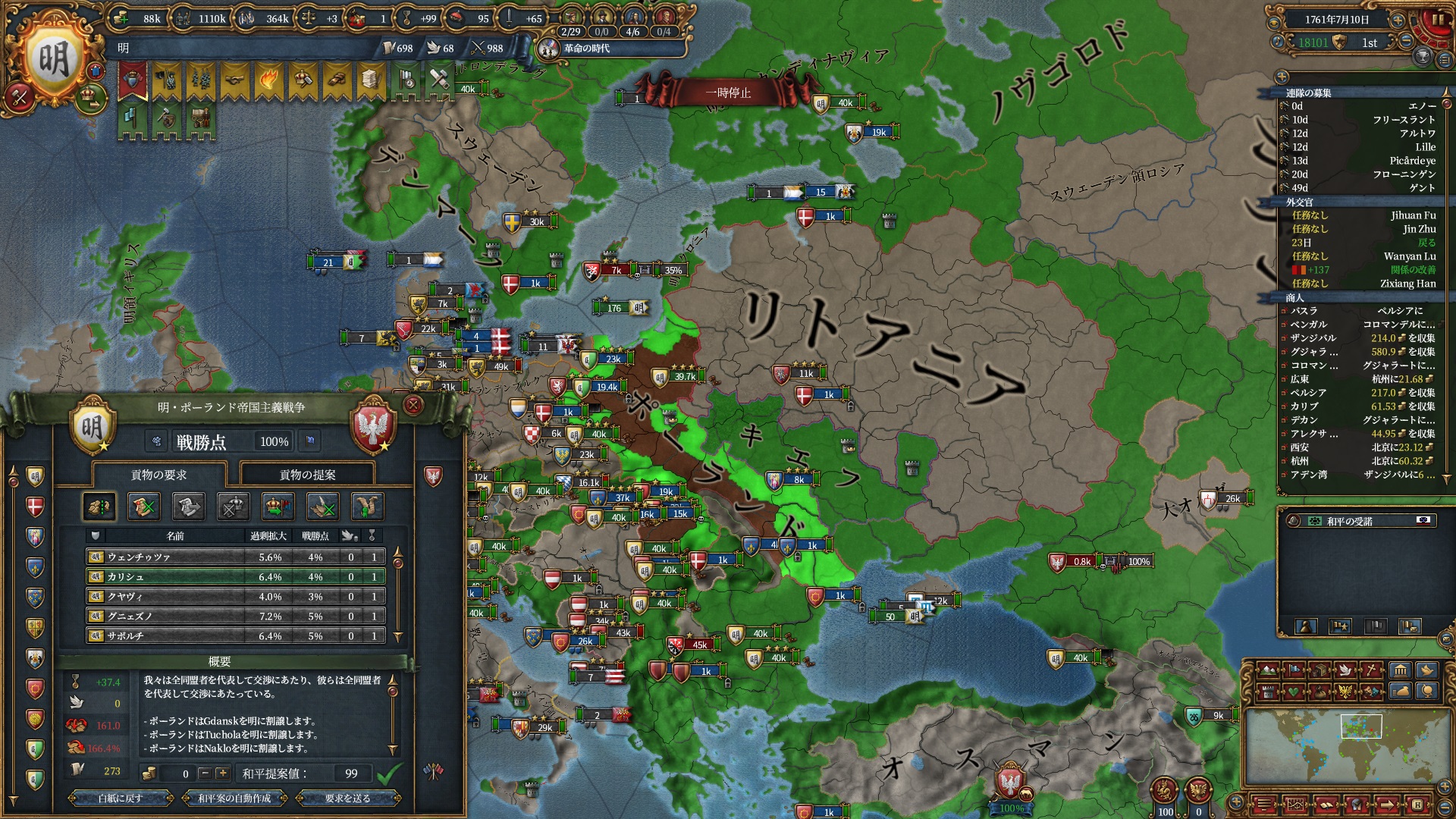 定期的にスウェーデン・リトアニアにやられており最近はカザンにもハイエナされモスクワ周りがかなり削られていました。