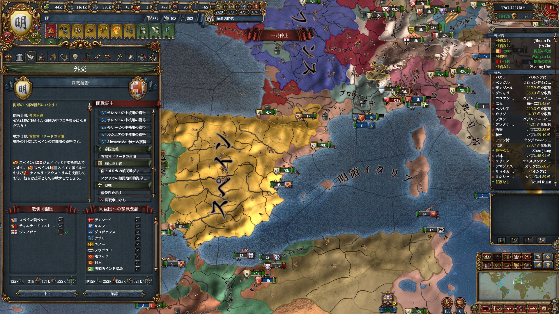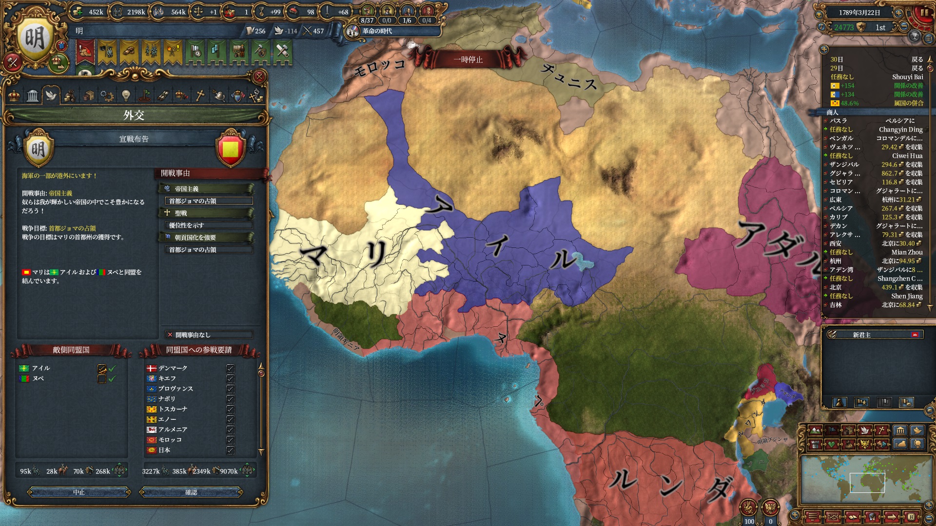 マリ・アイルの停戦が明けた為ヌペに宣戦しつつこの2国を共戦国に指定しています。