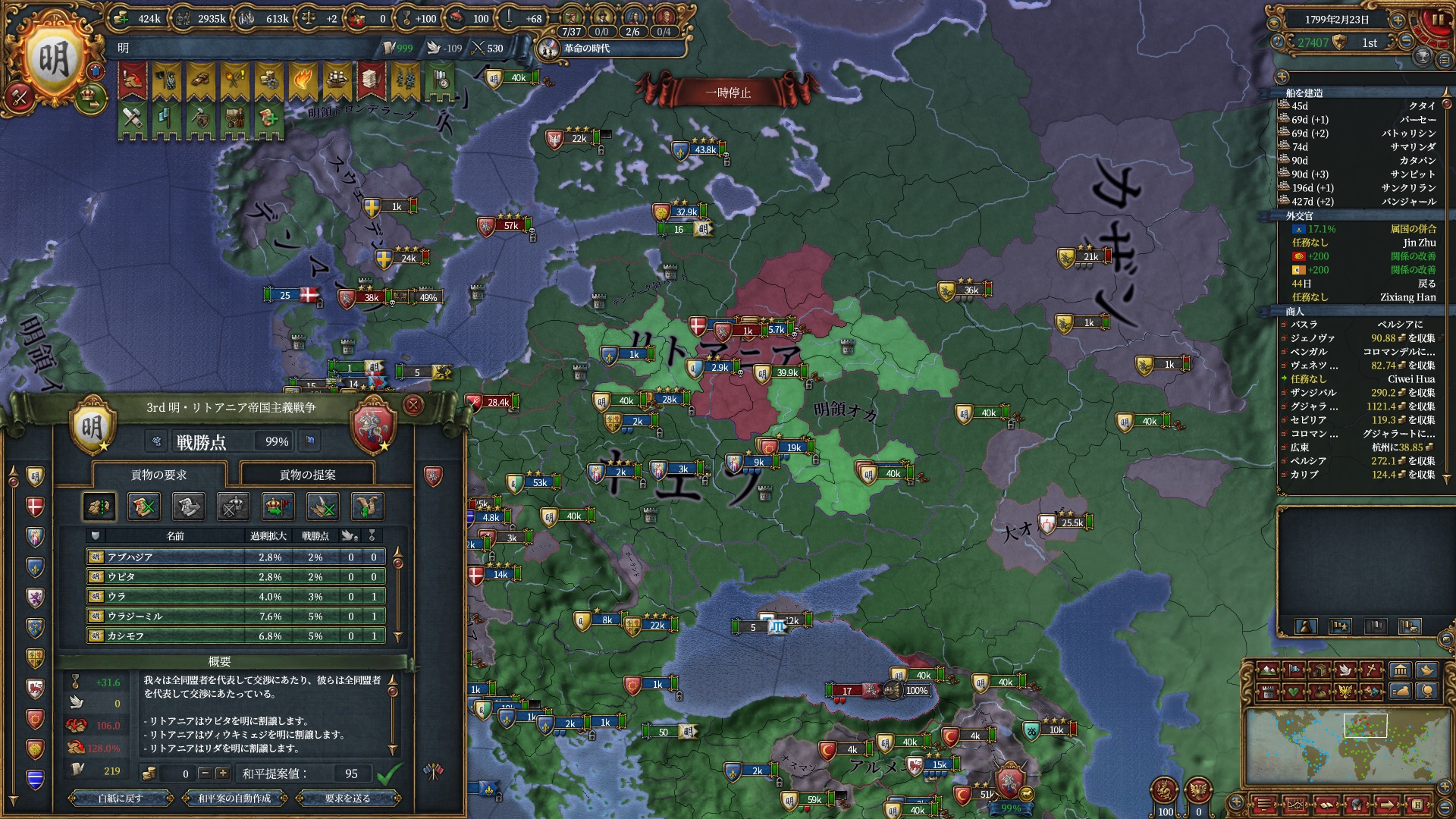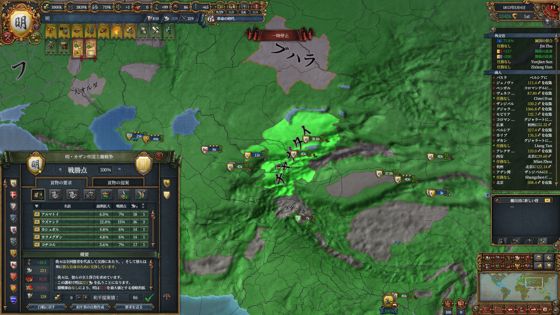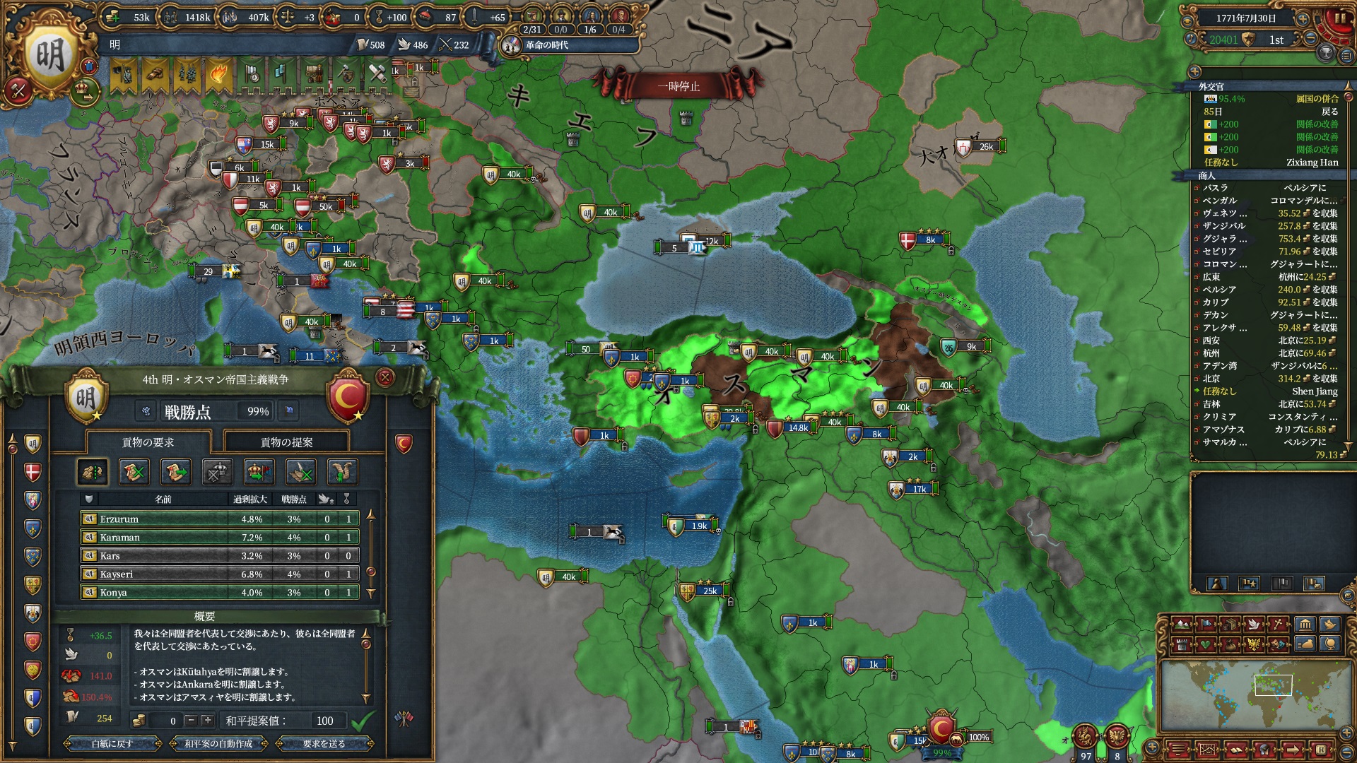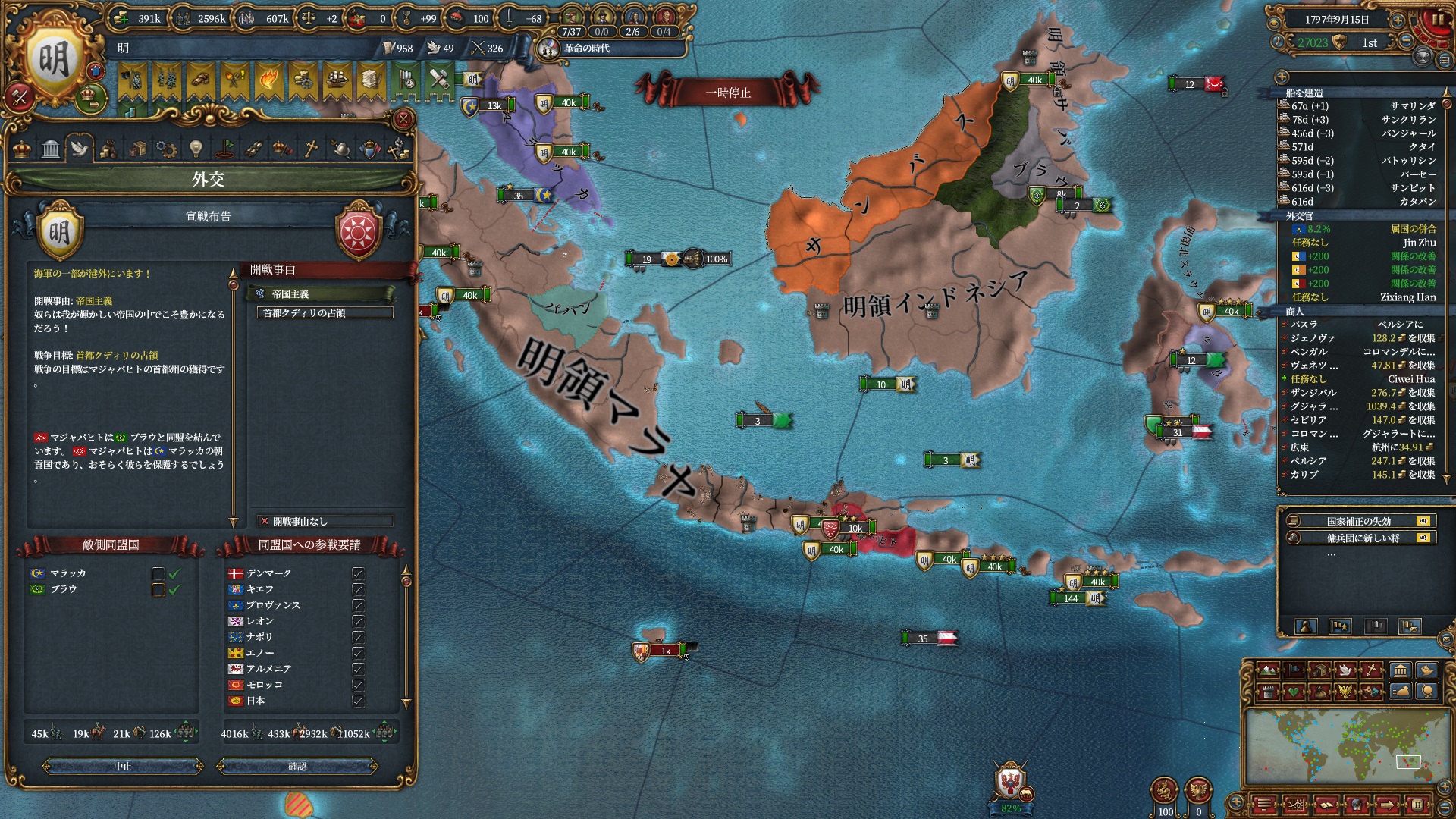 こちらもOEが爆発しているためアユタヤ戦後に作成した衛星国に分散させました。