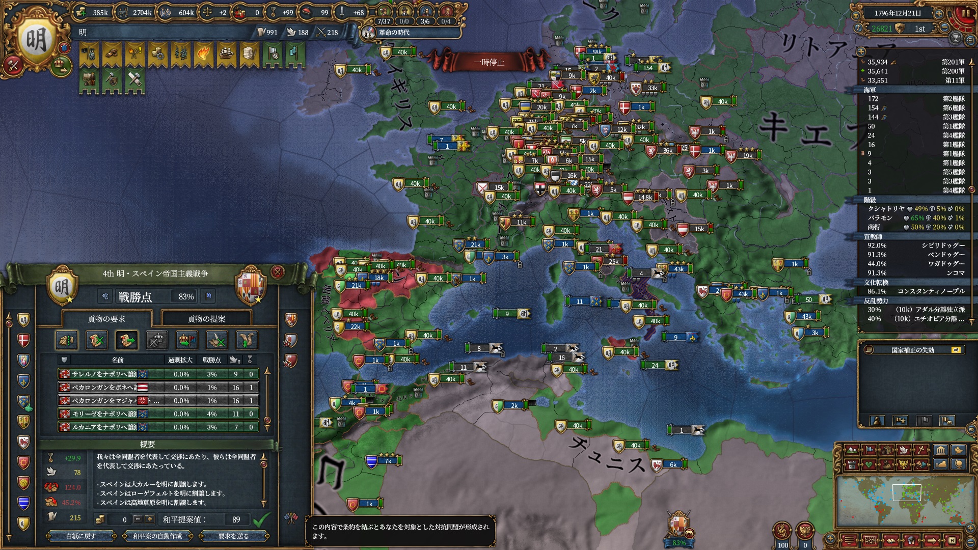 プロヴァンスは大分前から属国併合中ですが州を投げたりこの後の不当な請求連打による外交点枯渇で最期まで併合できませんでした。