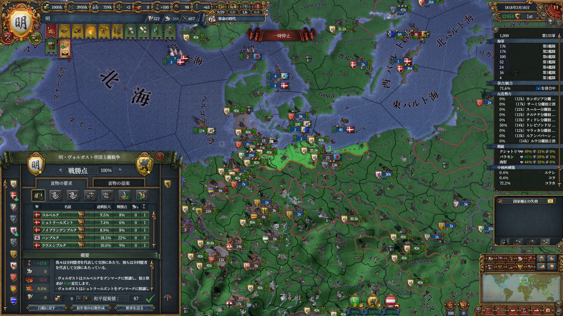 またヴォルガストは船が多く海軍国家として侮れない存在になっており、デンマークの州返還で少しずつ削っています。