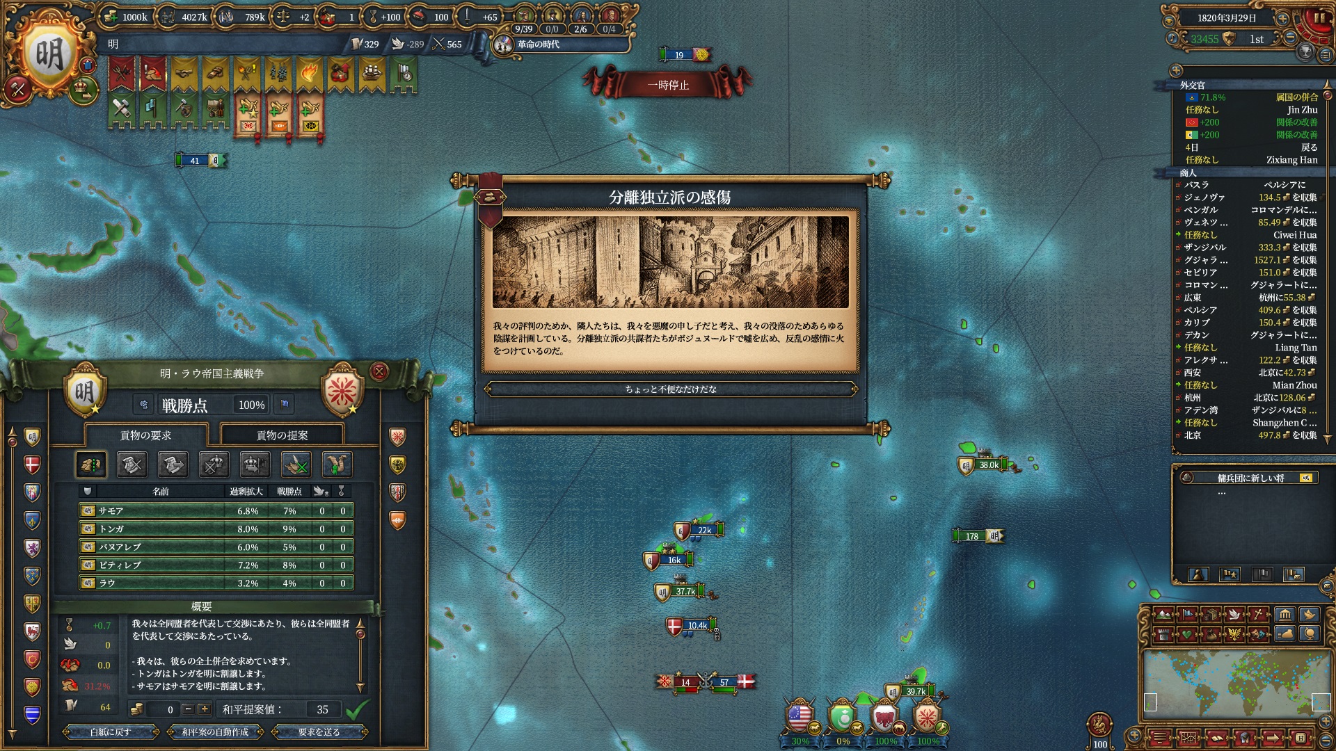 オーストラリアはdevが上がっている為か譲歩の点も高く出てくる軍量も多く割と手間のかかる相手でした。