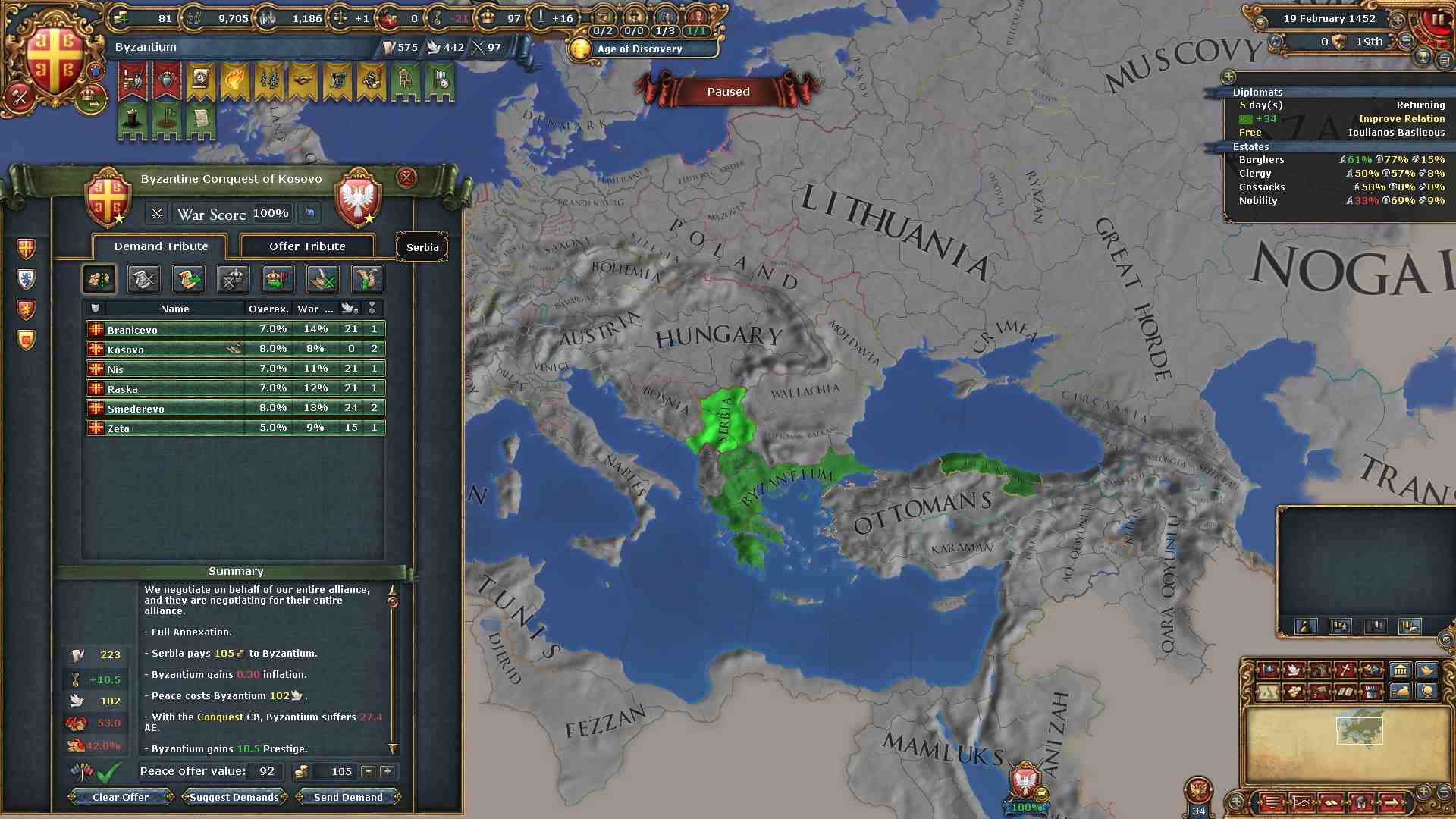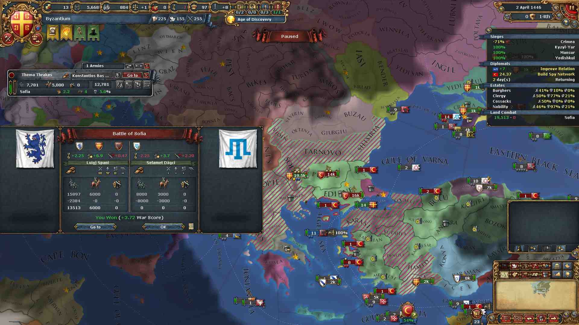 オスマン軍の首都エドリネを落とし、戦勝点MAXの理想的な形で終戦となりました。