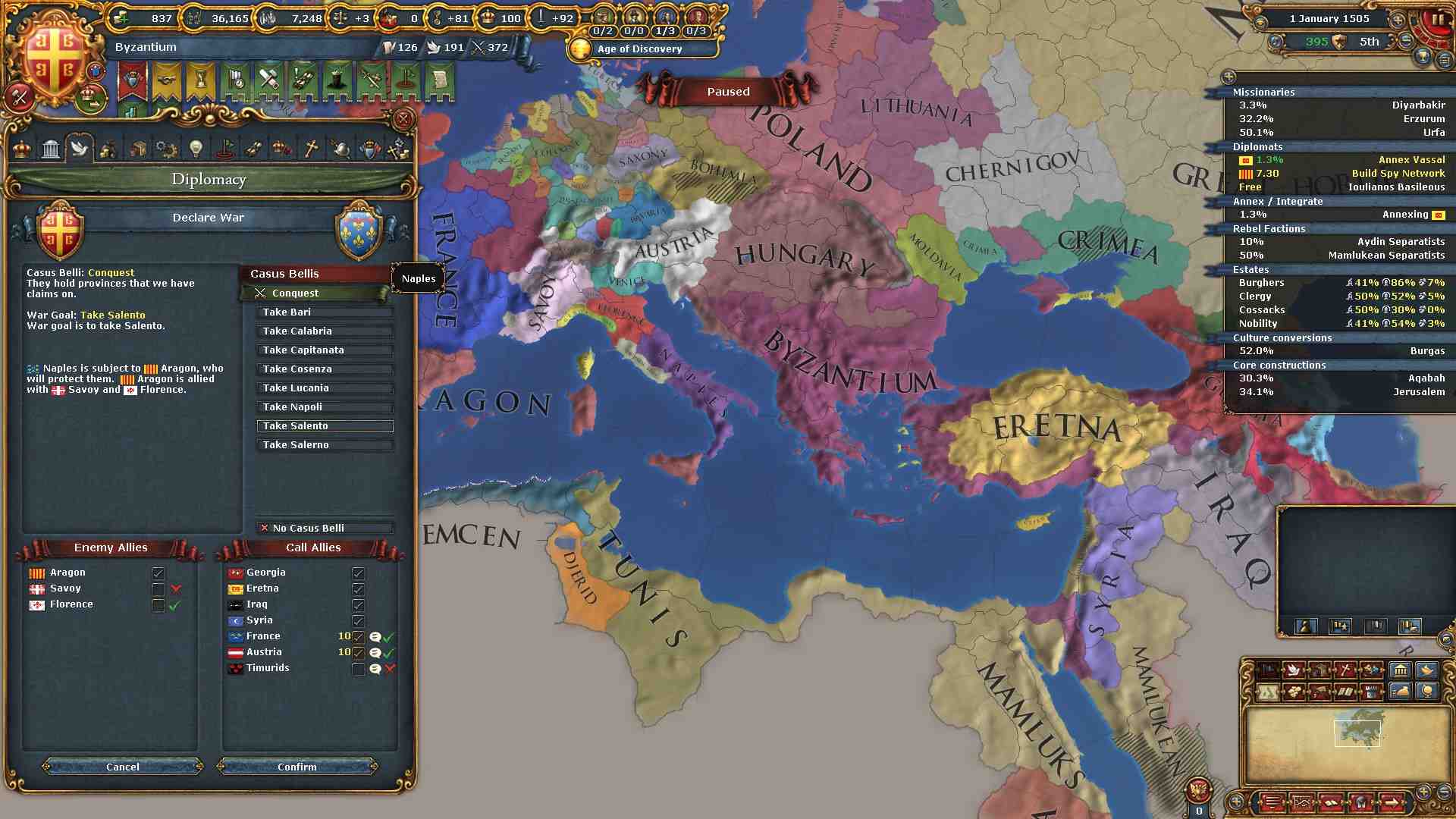 AE対策の為にキリスト教圏への侵攻に関しては、当分の間アラゴン、ポルトガルだけに絞ります。