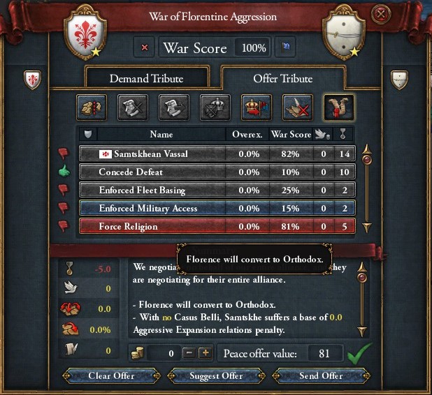 100点和平を要求できるようになったので,ここはひとつ改宗してもらおう.