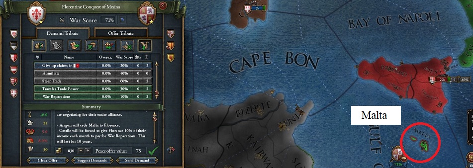 こちらもMaltaを取って終戦し,属国Sicilyを作成する.
