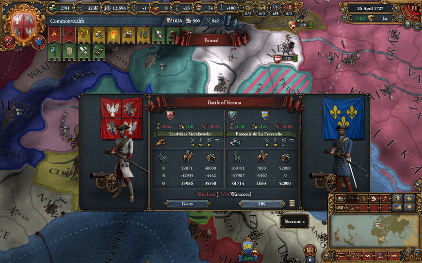 軍事技術は同等。フランスの将軍とNIの優秀さ。加えて敵が攻勢と防勢をちゃんと取得していると言う事情もある。