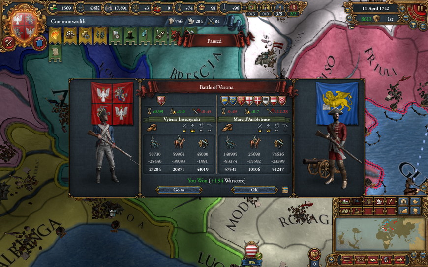ヴェネツィアの占領を目的として、Franceとの初戦に挑む。
