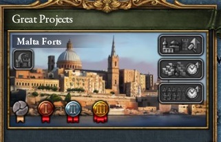 マルタ島のモニュメントが最終段階まで改築できたわ。異教に対する戦勝点コストが-15%になったわ。