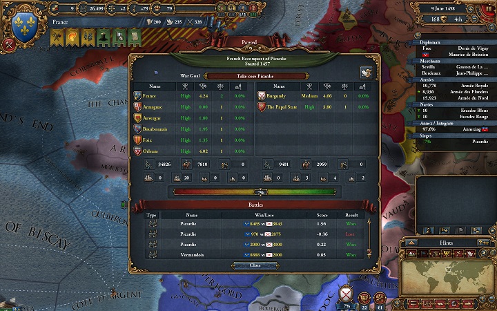 相手の同盟国ブルターニュが参戦拒否しなかったらもっと際どかったかも。