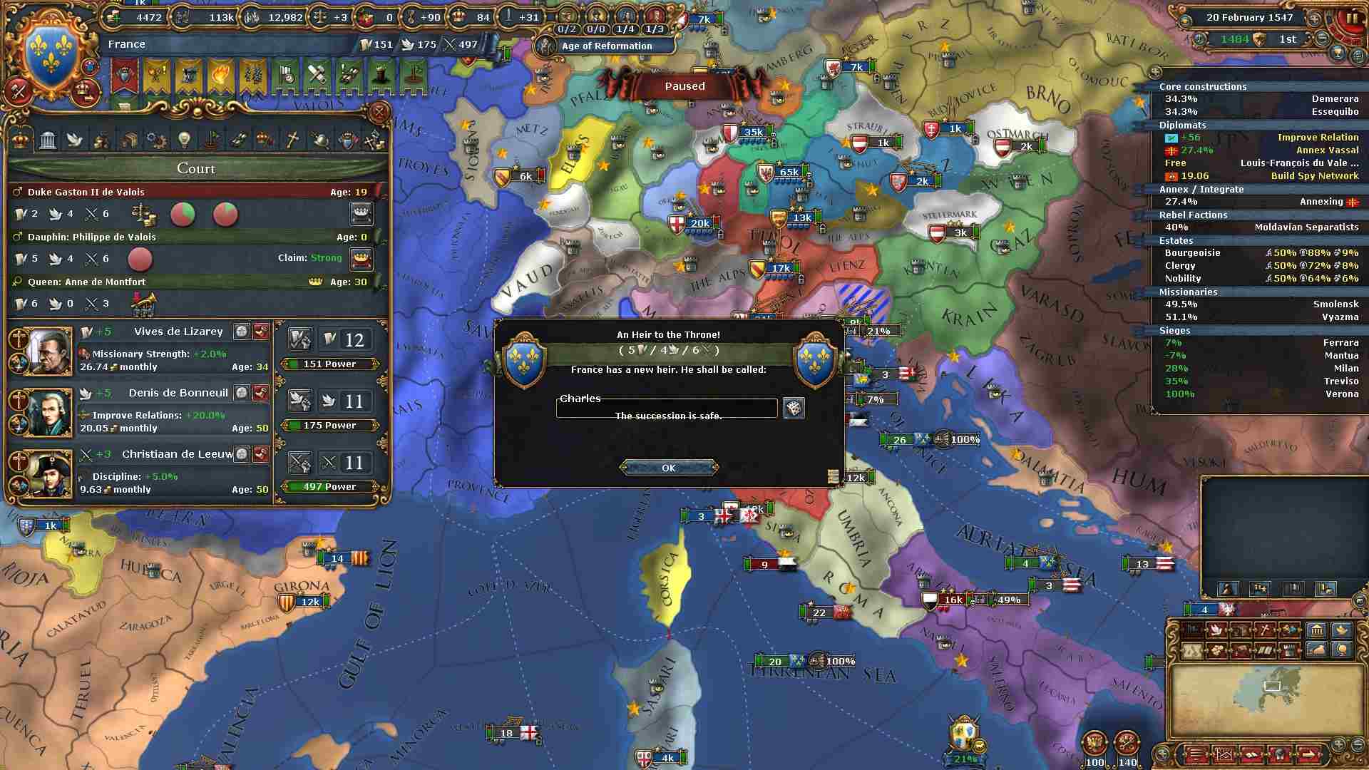 神聖ローマ皇帝を使った世界征服では自力でのコア化が少なくて済みます。