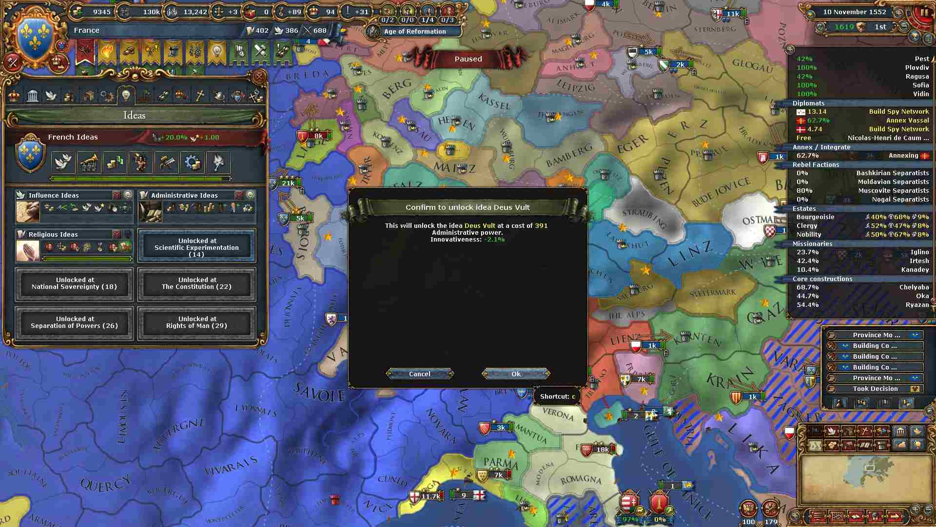3番目のアイデアに宗教アイデアを選択しています。