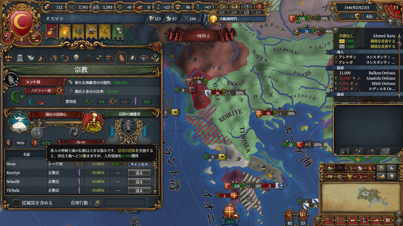 今回はイスラム再改宗によるイスラム諸国へのopinion上昇策は使いませんでした。