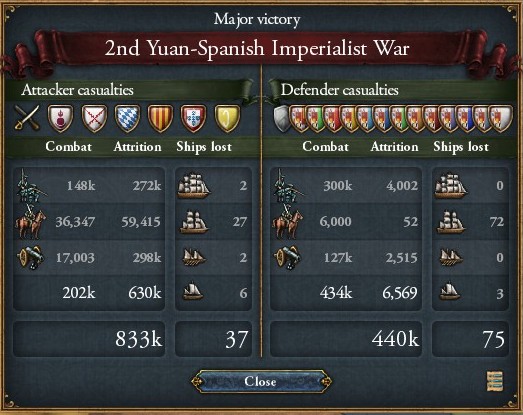 結局スペイン相手には1兵も失わないまま3年後に白紙で分離和平しやがりました。