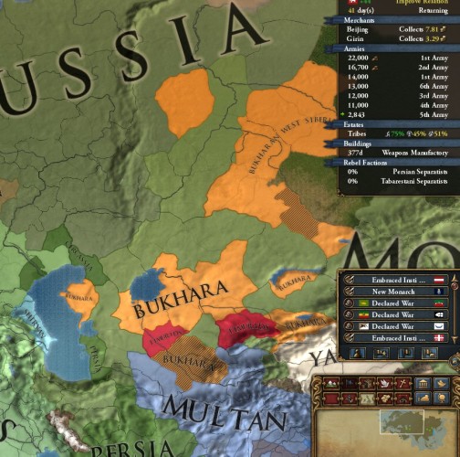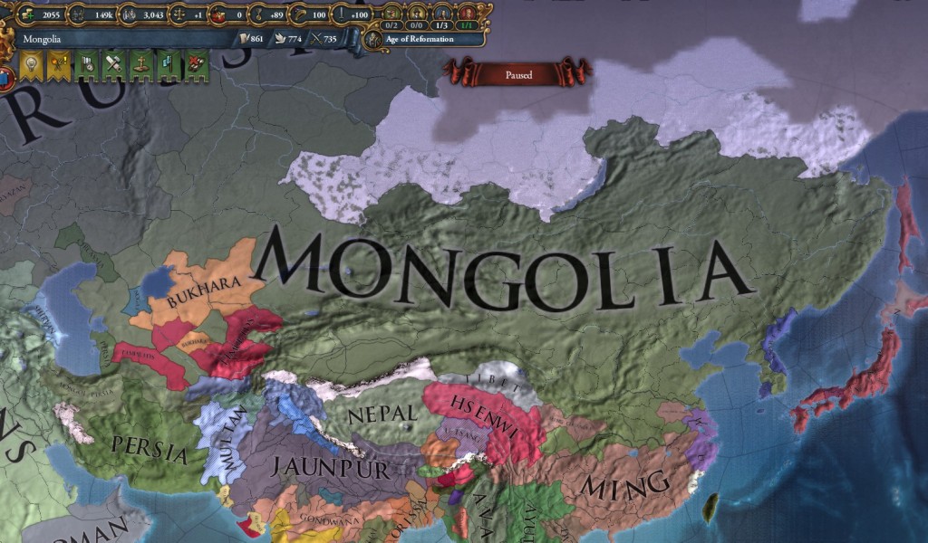 ところで目標実績のひとつThe Great Khan達成のためには中華領域に留まらず、ロシア・ペルシャリージョンまで勢力下に収めることが必要です。
