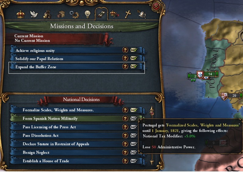が目的。報酬は統治点と外交点と威厳。ディシジョンは変化なしで、Formalize scale~を選択。