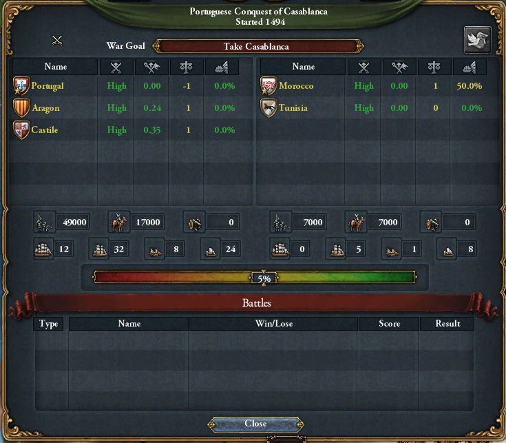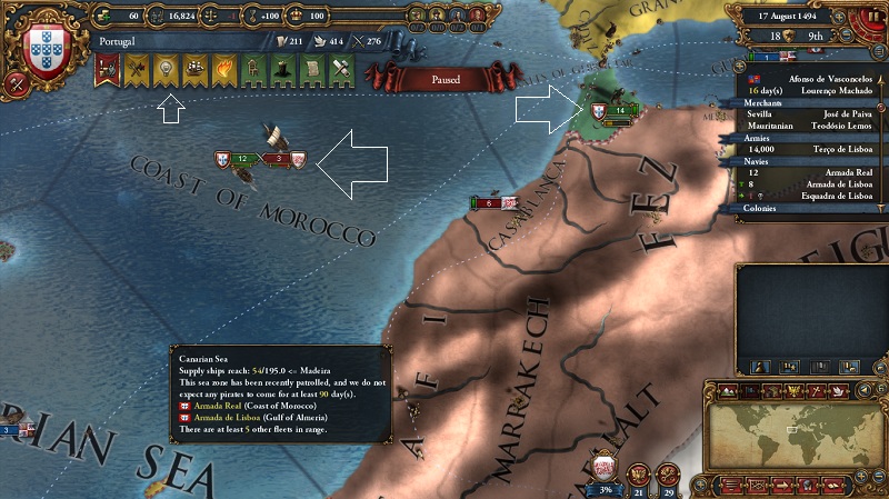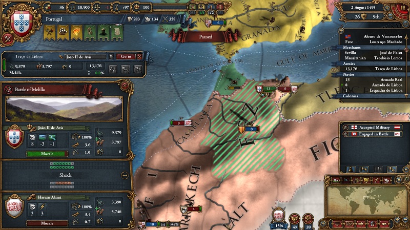 ▲さっそく海戦。陸軍はセウタからフェズに進軍させる。また戦争と同時に政策が解禁される。